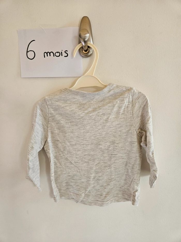 Vend tee-shirt 6 mois, très bon état. D'autres vêtements à vendre, n'hésitez pas à crée un lot. Envoi rapide et soigné.