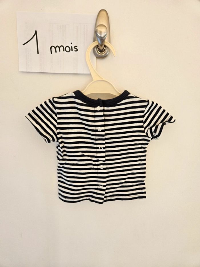 Vend tee-shirt 1 mois, très bon état. D'autres vêtements à vendre, n'hésitez pas à crée un lot. Envoi rapide et soigné.