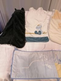 4 draps pour lit bébé de 60-120 cm (2 blanc, 1 jaune et 1 blueclair) 2 protège matelas 60-120 cm couleur blanc 1 protège nacelle ou cosy (petit) couleur blanc