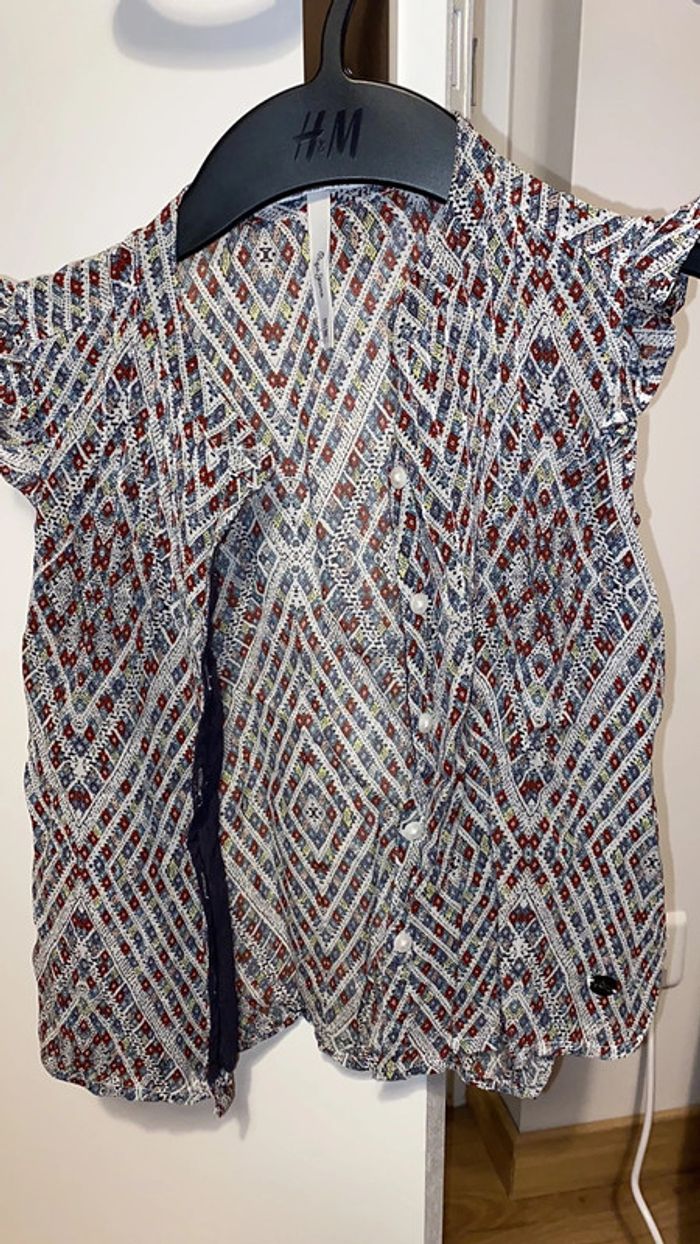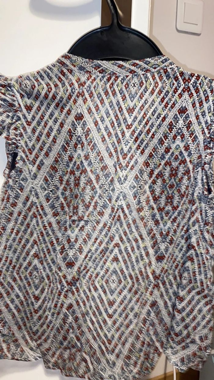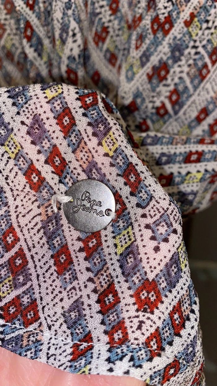 Jolie blouse à motifs géométriques Pepe Jeans, sans manches, avec froufrou en finitions. Le devant est entièrement doublé par du voile gris. Elle n’a jamais été portée #lmpereirafille10ans