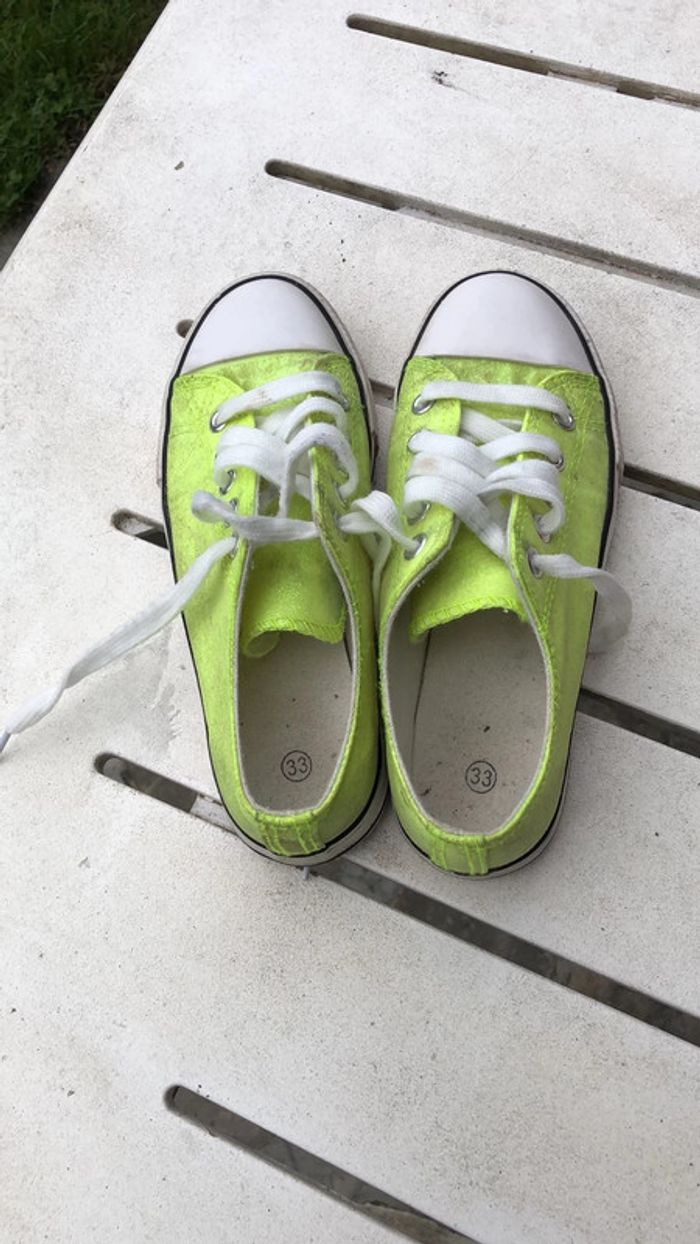 tennis fille jaune fluo pailleté état satisfaisant pointure 33 #lmpereirachaussuresfilles