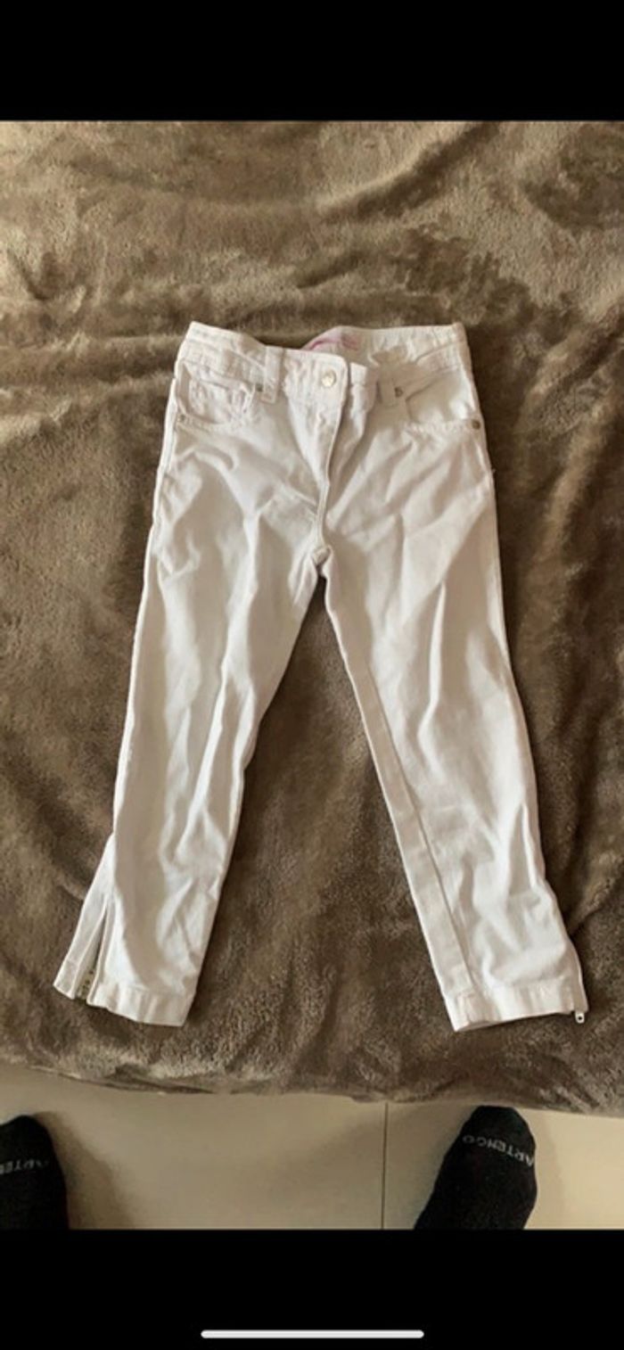 jeans blanc avec fermeture en bas des jambes taille 5 ans