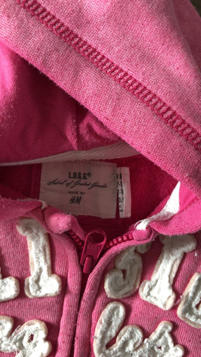 Sweat zippé à fermeture éclair et capuche. Rose délavé sur le devant (d origine) #lmpereirafille12_18mois
