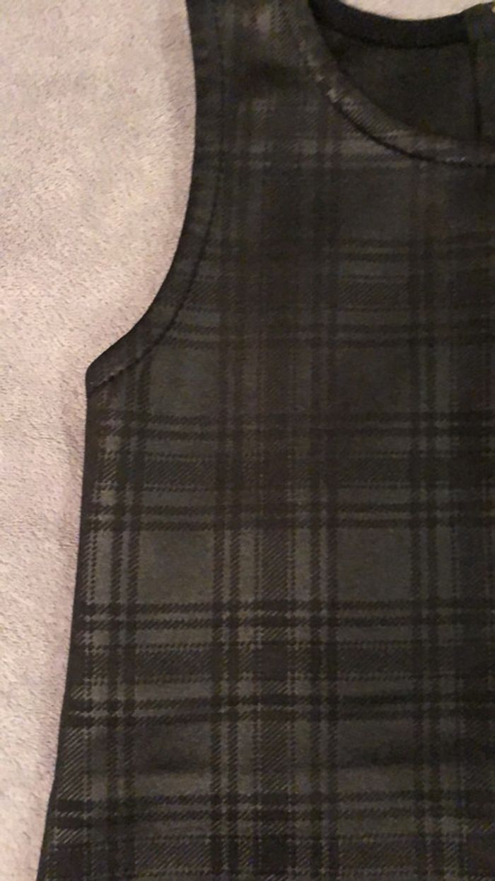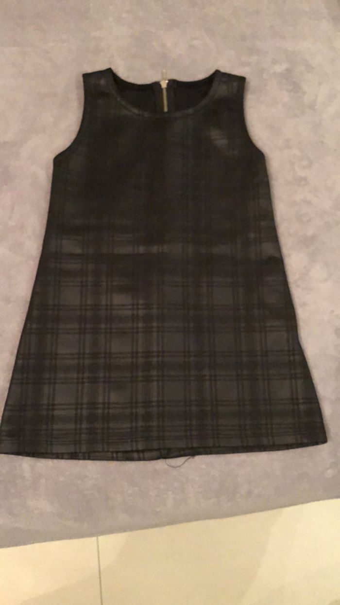 Robe patineuse noire à carreaux légers. Manches courtes, col rond. Fermeture éclair dans le dos. Matière un peu brillante, idéale pour les fêtes #lmpereiravetements4ans