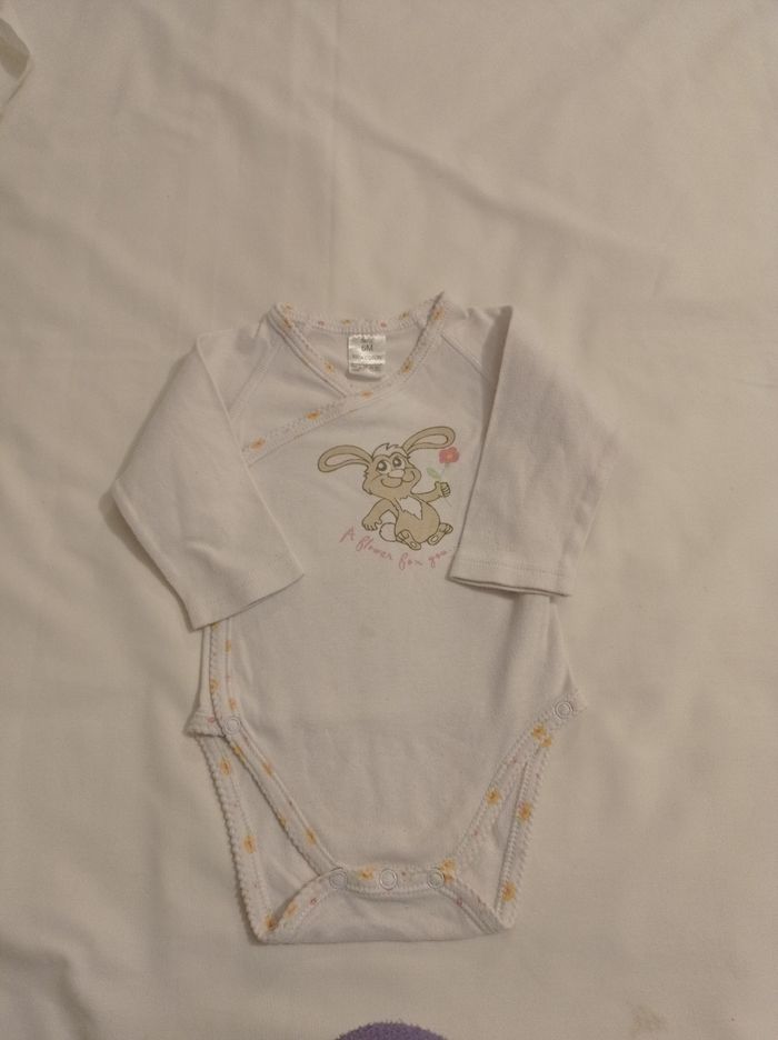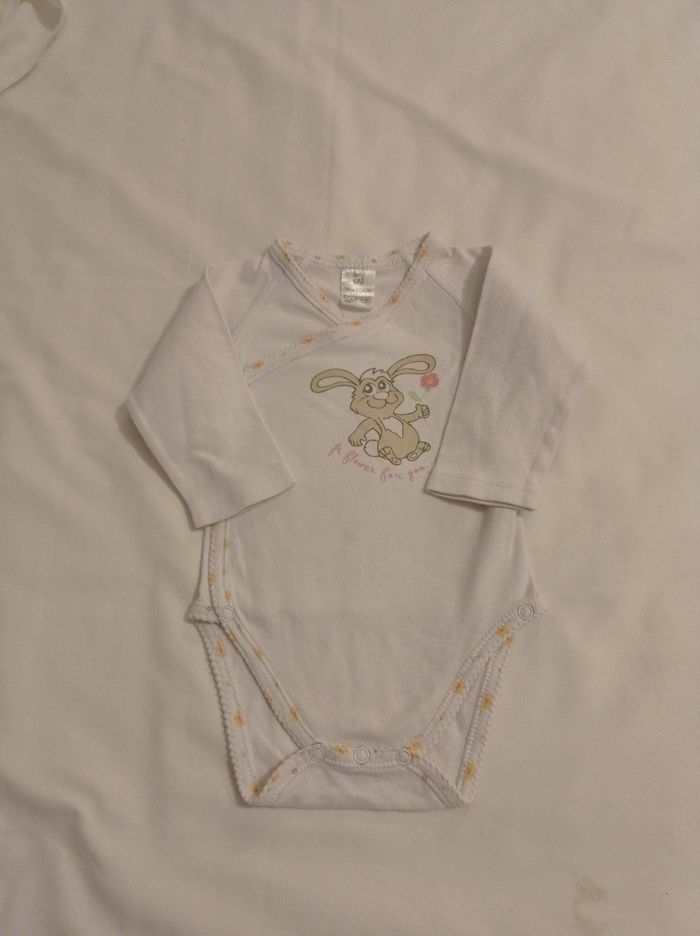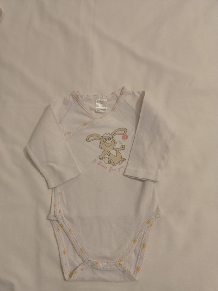 Body manches longues couleur blanc avec motif lapin devant taille 6 mois 100 pour 100 coton voir photos pour garçon ou fille