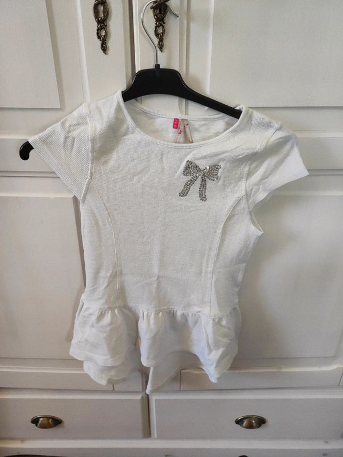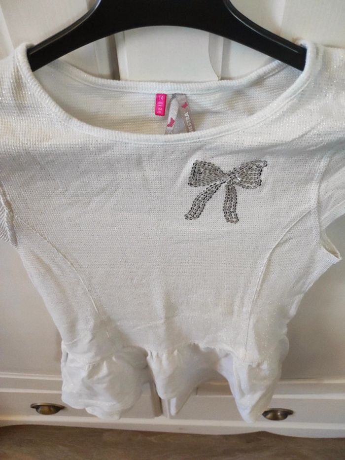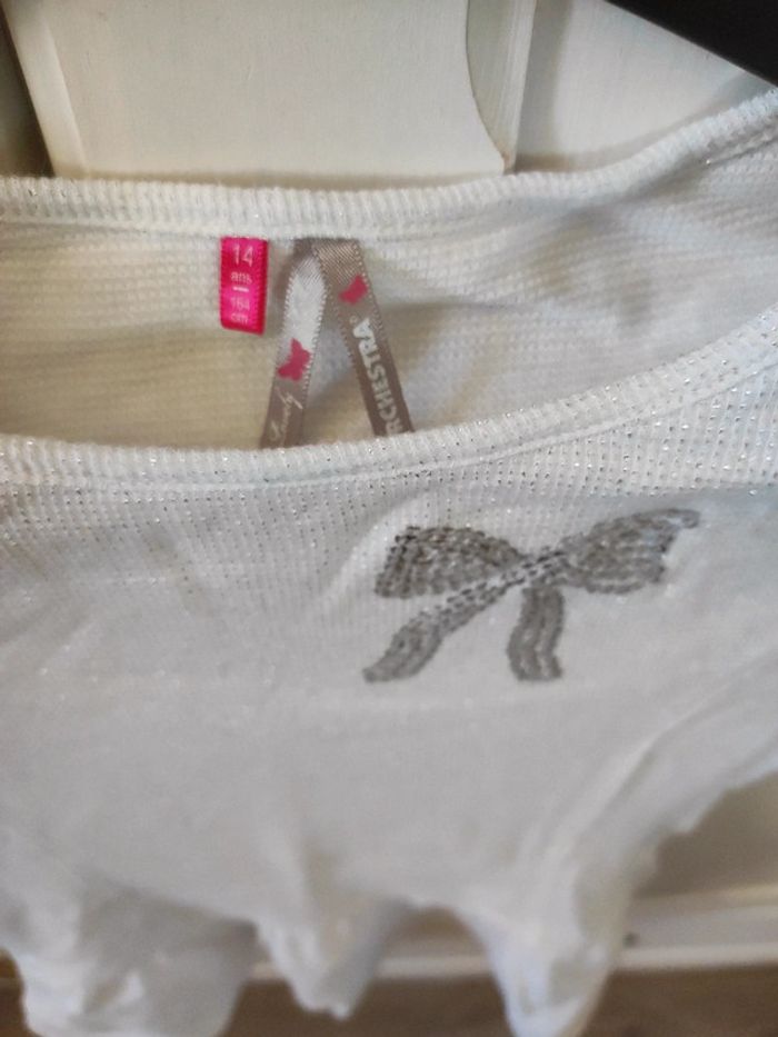 T-shirt long orchestra Taille 14 ans Blanc et argenté Très bon état