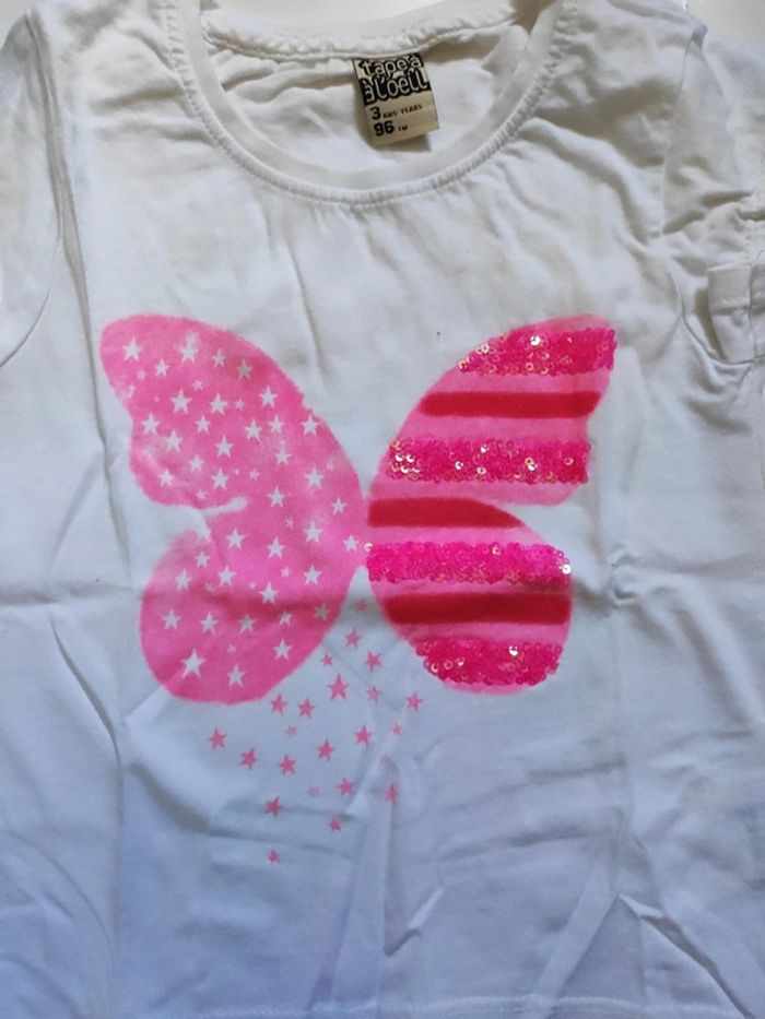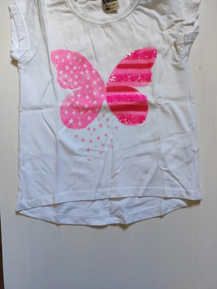 T-shirt fille Tao Taille 3 ans Blanc avec motif rose fluo Très bon état