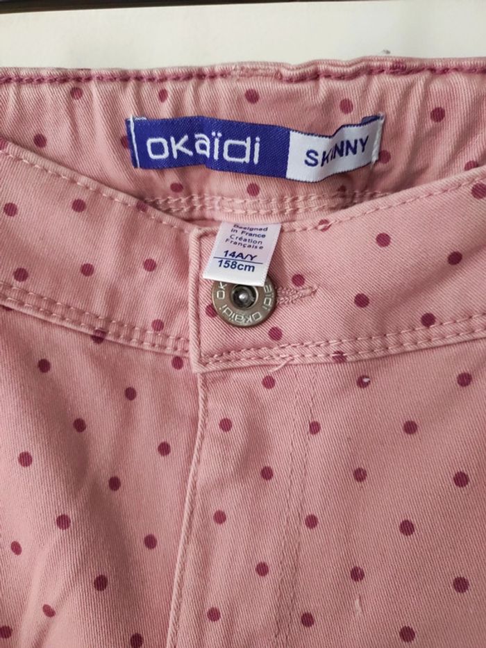 Jeans skinny Okaïdi Taille 14 ans Rose à pois Très bon état