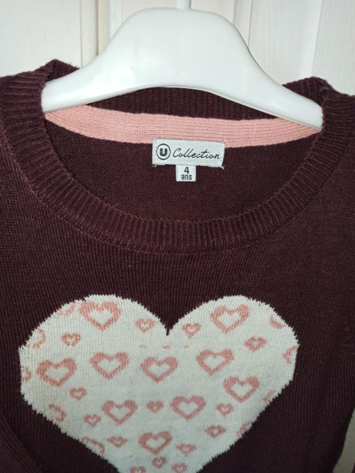 Robe ou pull long Taille 4 ans Bordeaux avec motif coeur Très bon état