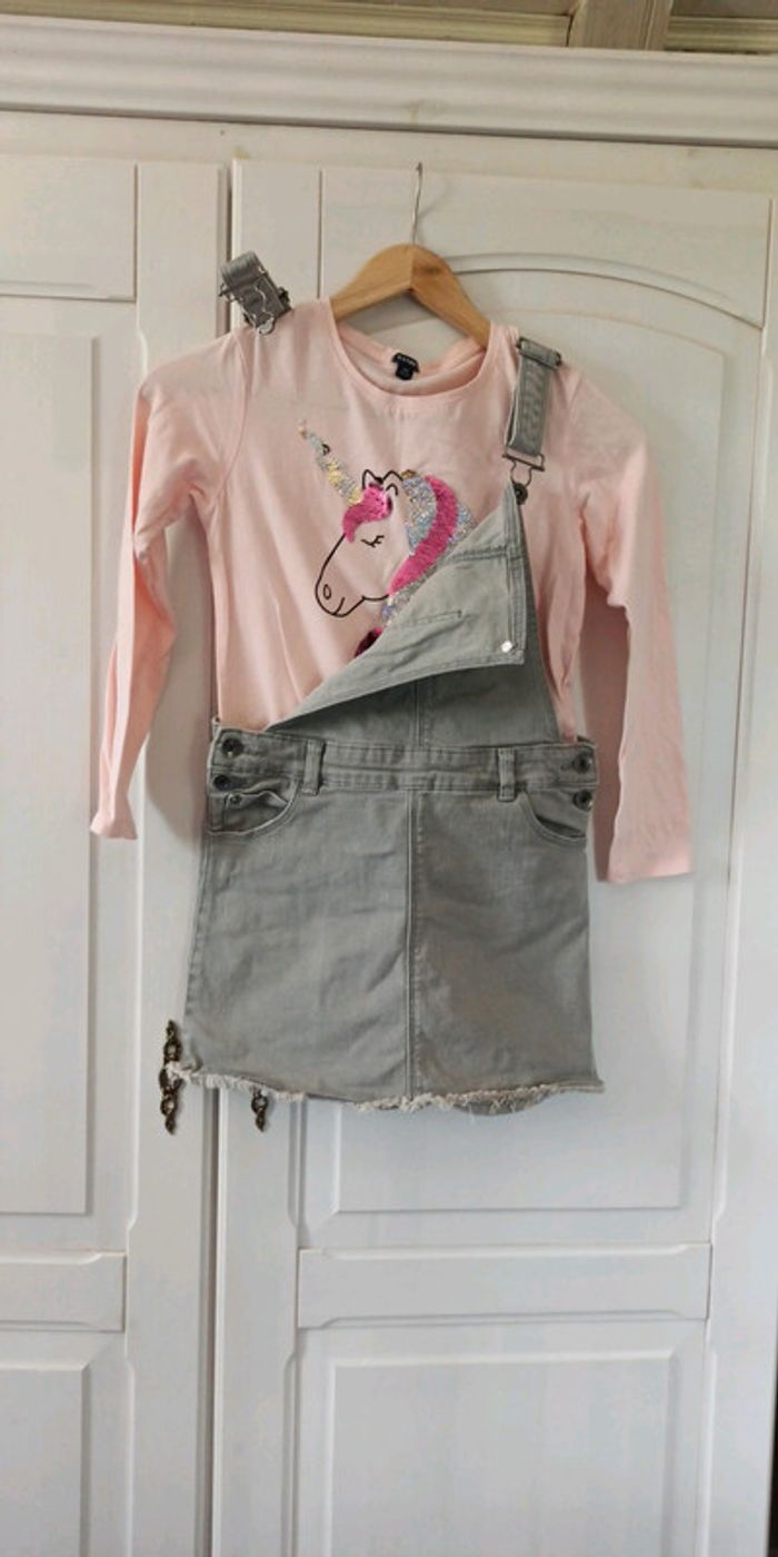 Ensemble salopette jupe en Jeans et t-shirt Licorne