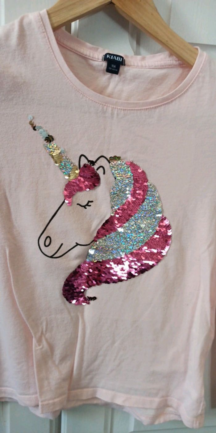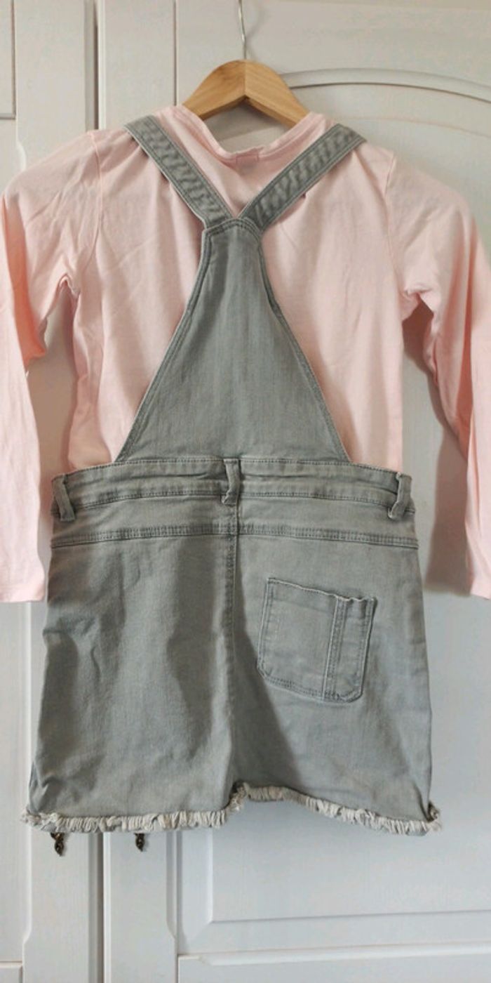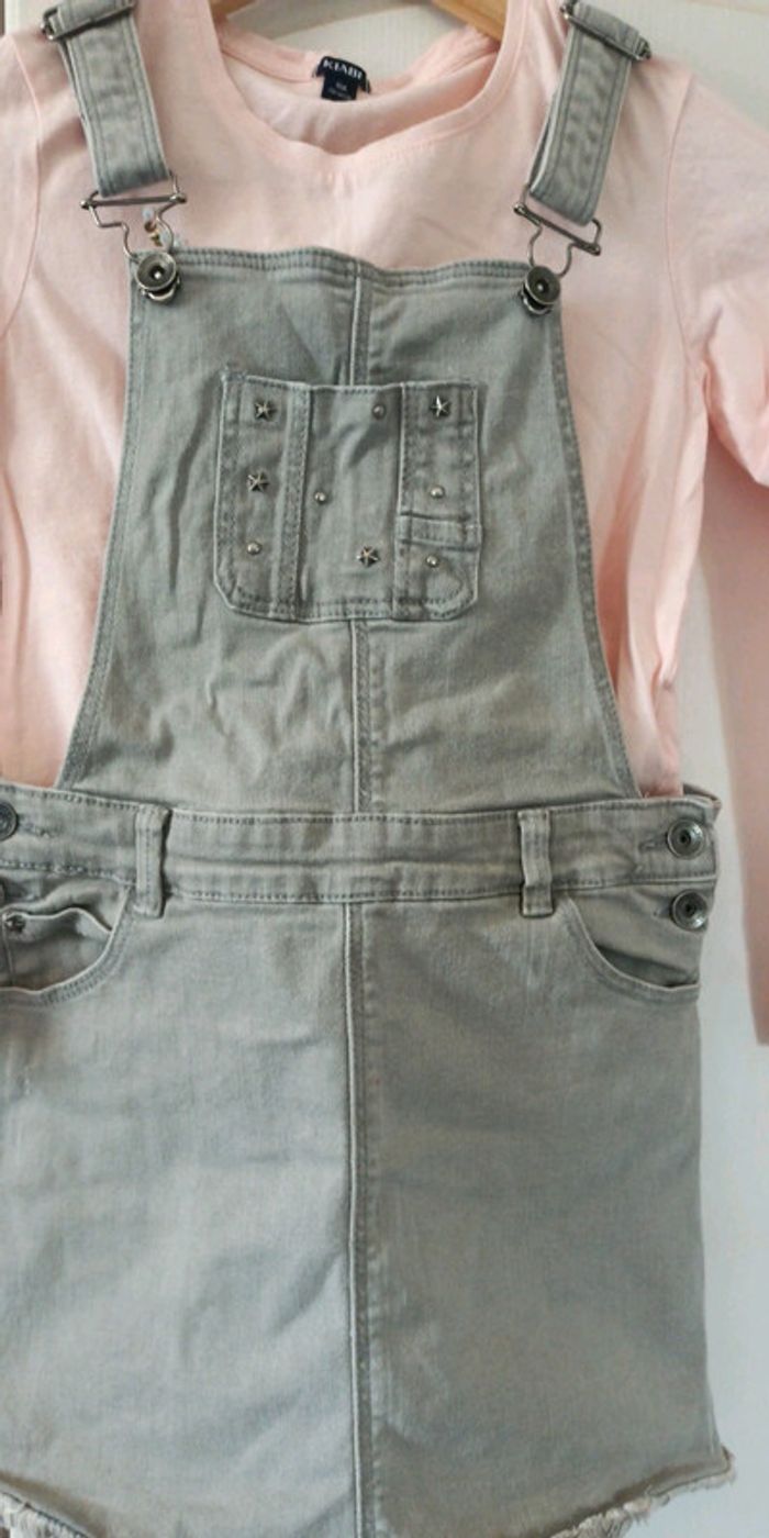 Salopette jupe gris clair taille 10 ans T-shirt manches longues avec sequins réversibles 10 ans ( Kiabi) Très bon état