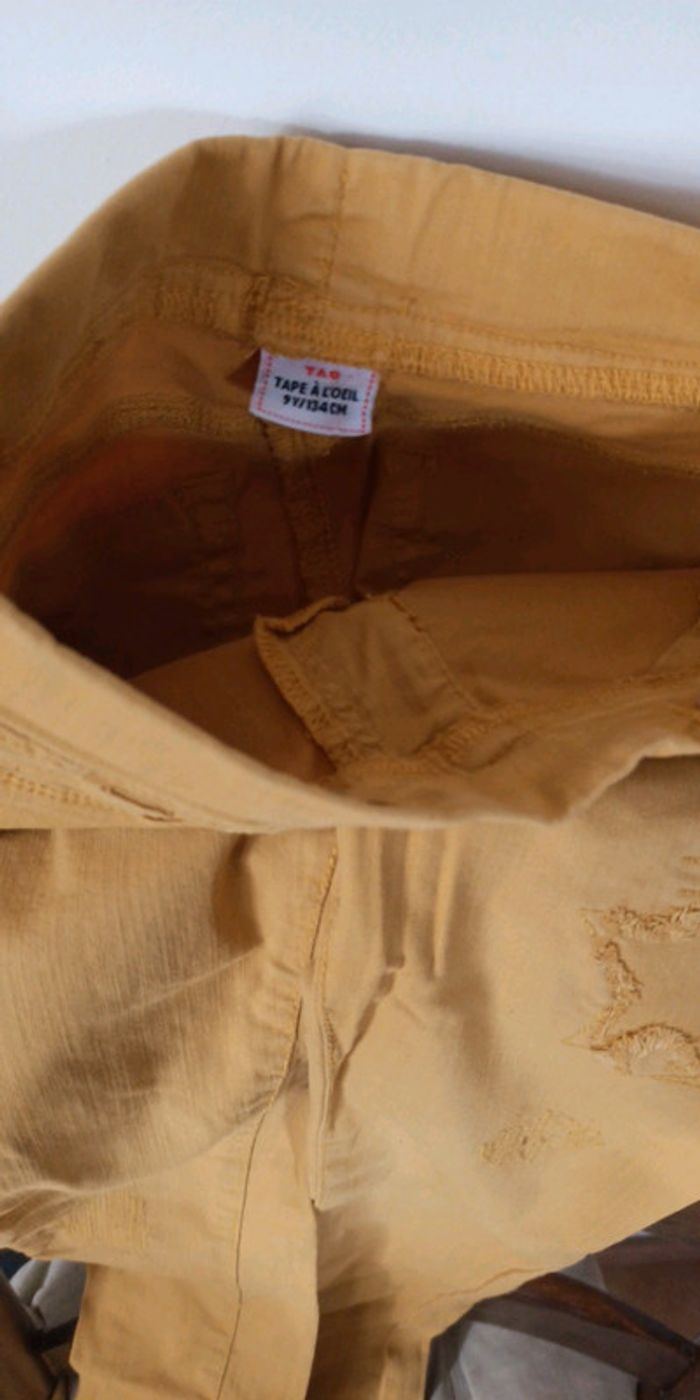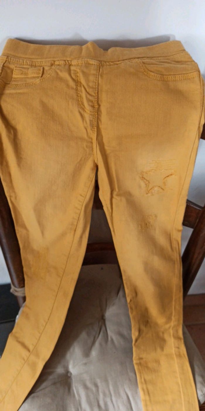 Jeans, jegging TAO Moutarde Avec effet usé Taille 9 ans