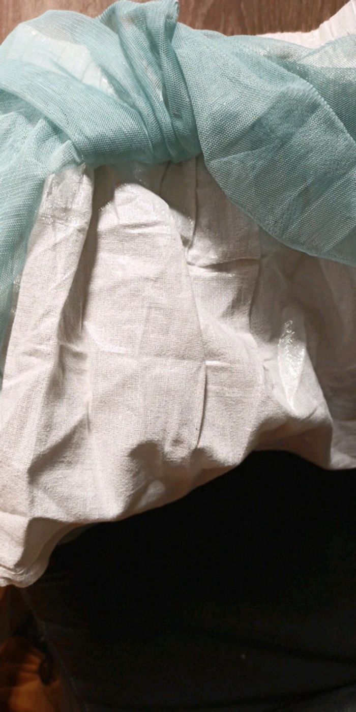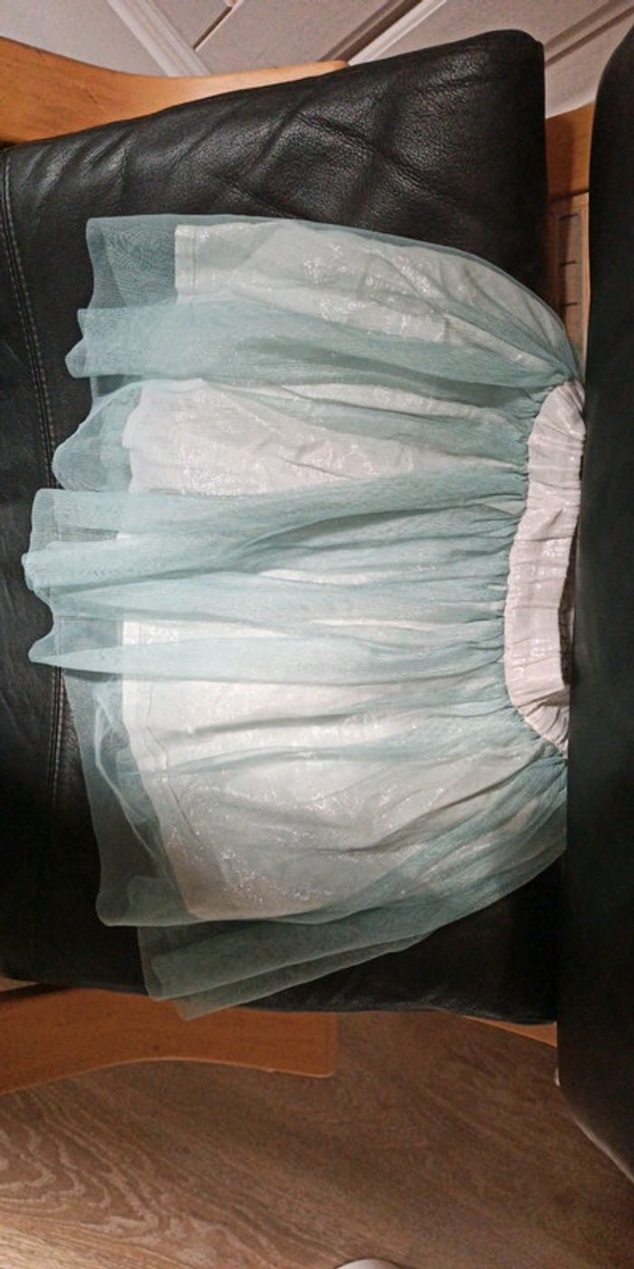 Jupe courte Taille 5/6 ans Vert menthe/ argenté Un petit trou voir photo mais caché avec les plus