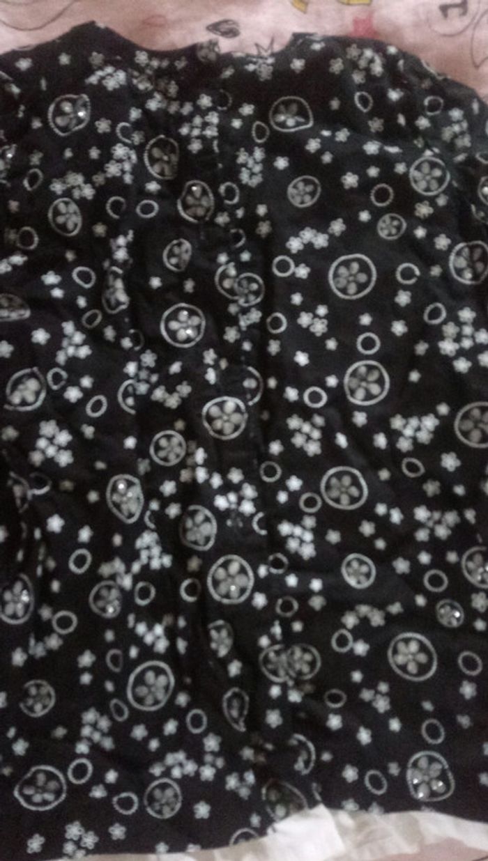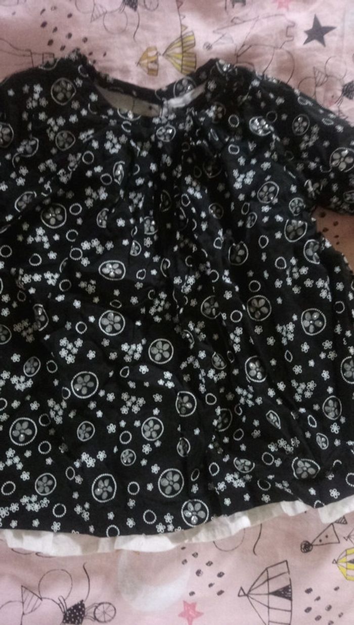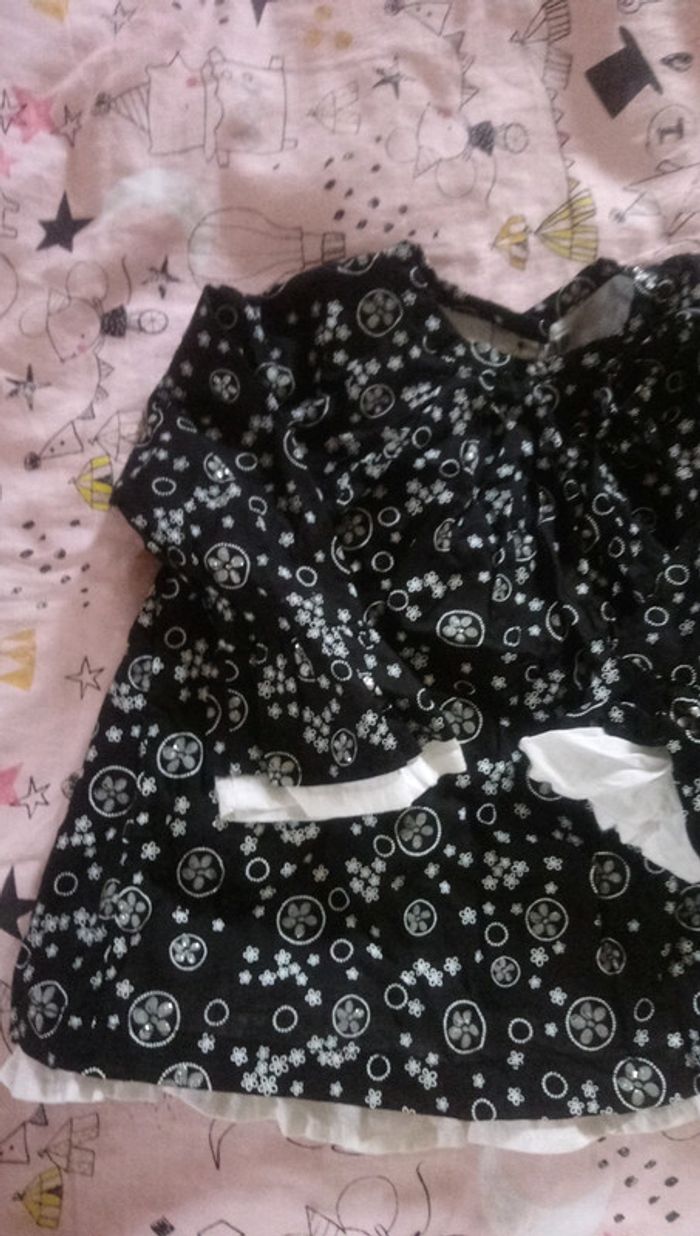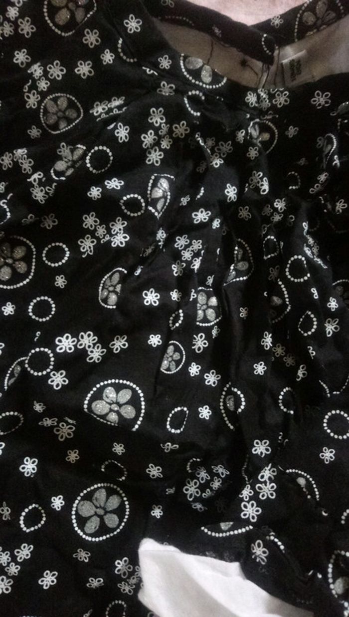 Blouse fille tape à l'œil 18mois Manches longues Noir avec motifs blancs et argenté