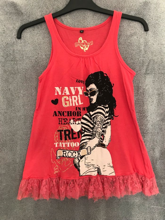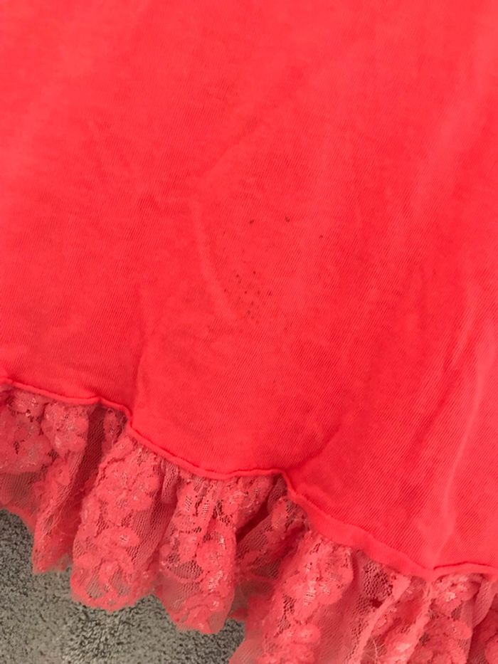 Petite tunique légère ornée de strass or avec mini jupon dentelle Petits points de taches à l’arrière (voir photo) mais ne voient pas porté
