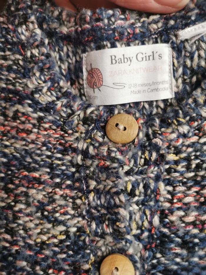 Gilet bébé fille 12/18mois zara baby girl en tbe etat. Très chic aves ses boutons en bois. Je n'ai plus l'étiquette de la composition je dirais que c'est de la laine acrylique et coton. Il taille grand (86cm) plutôt du 24 mois.