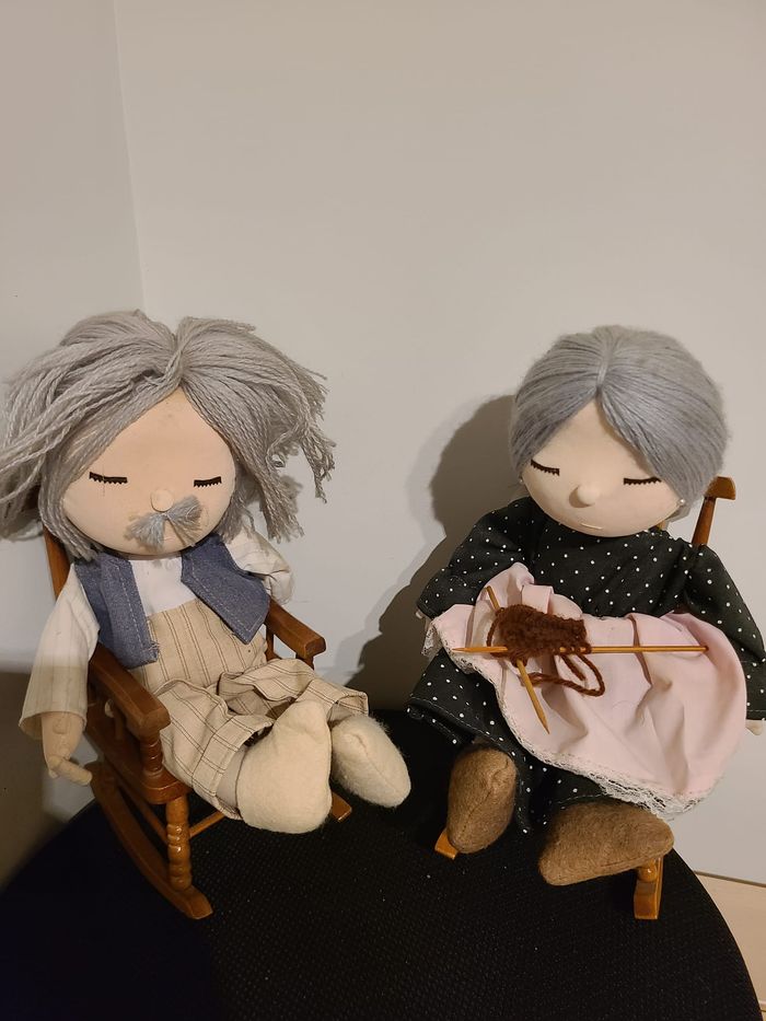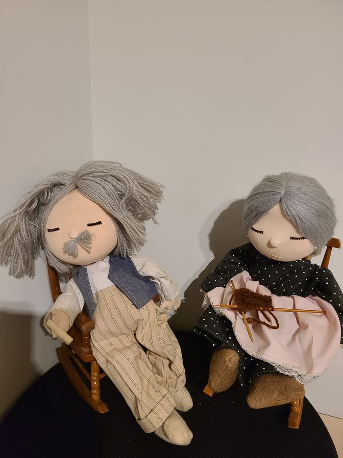 2 poupées 12 pouces en fauteuil à bascule homme âgé femme, grand-mère, grand-père fait main