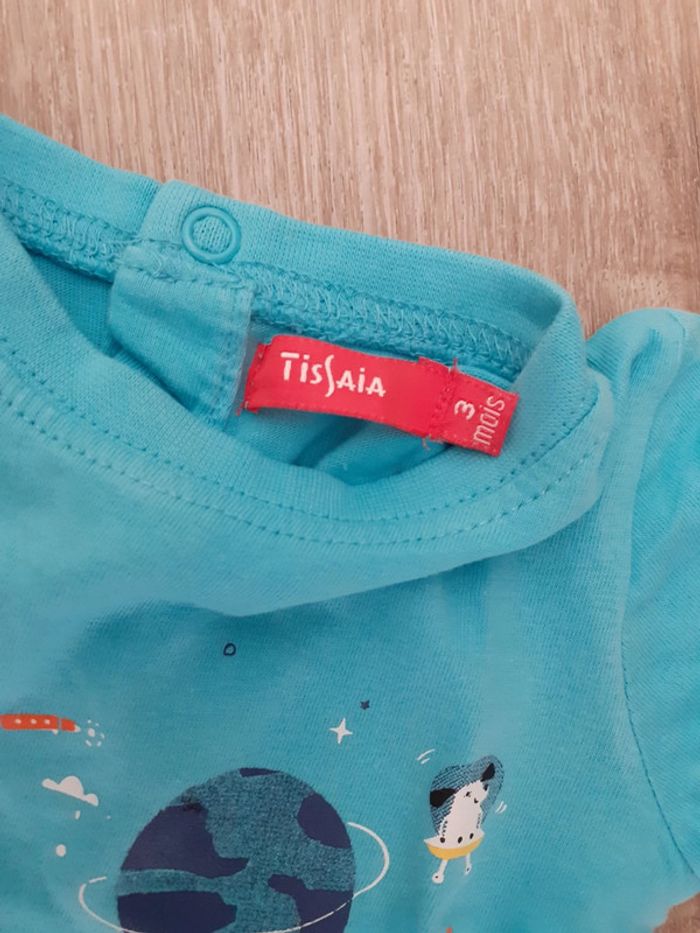 En très bon état général. La photo fonce la couleur du tee-shirt. Le haut est bleu clair. #vetements3moisbebeluca