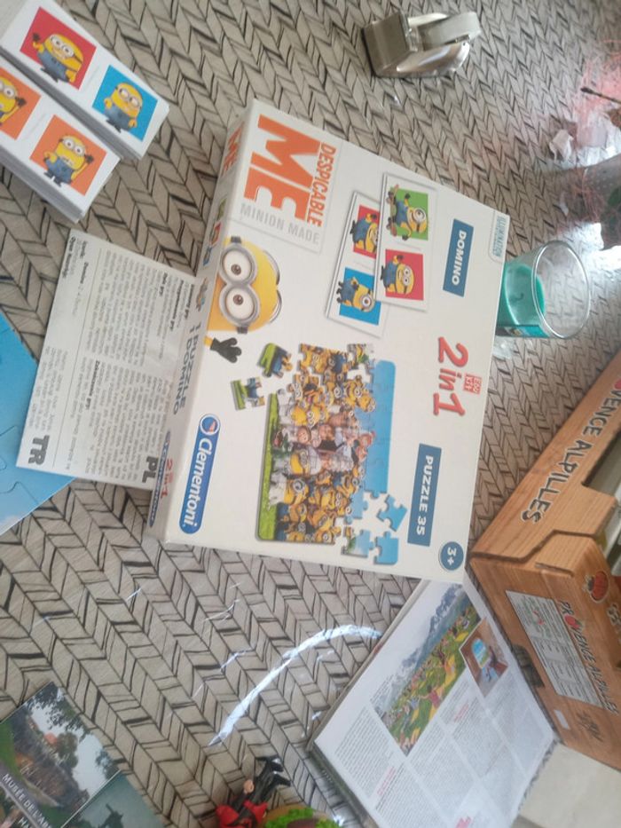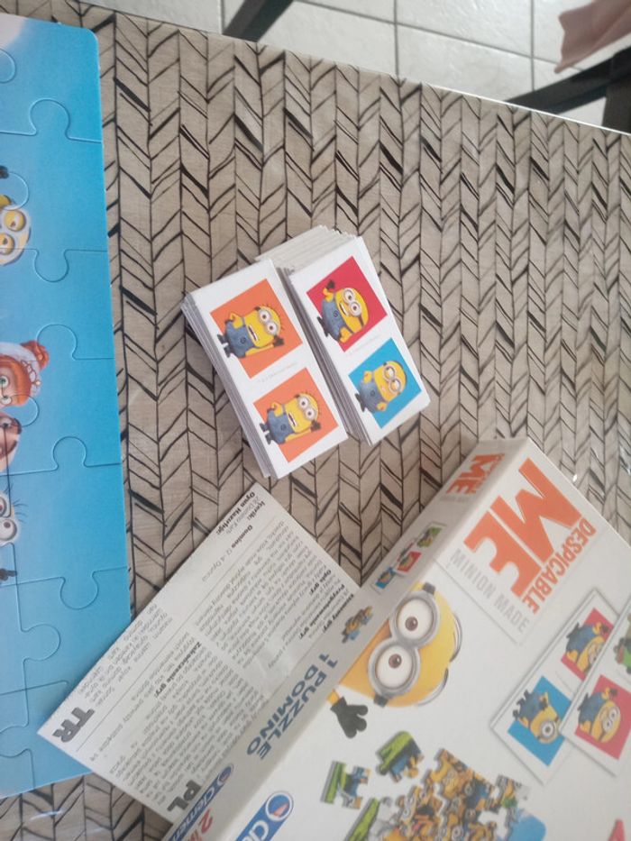 Boite de jeu Minions avec un jeu de domino et un puzzle de 35 pièces il est complet et en très bon état ( bac jeux 1 )