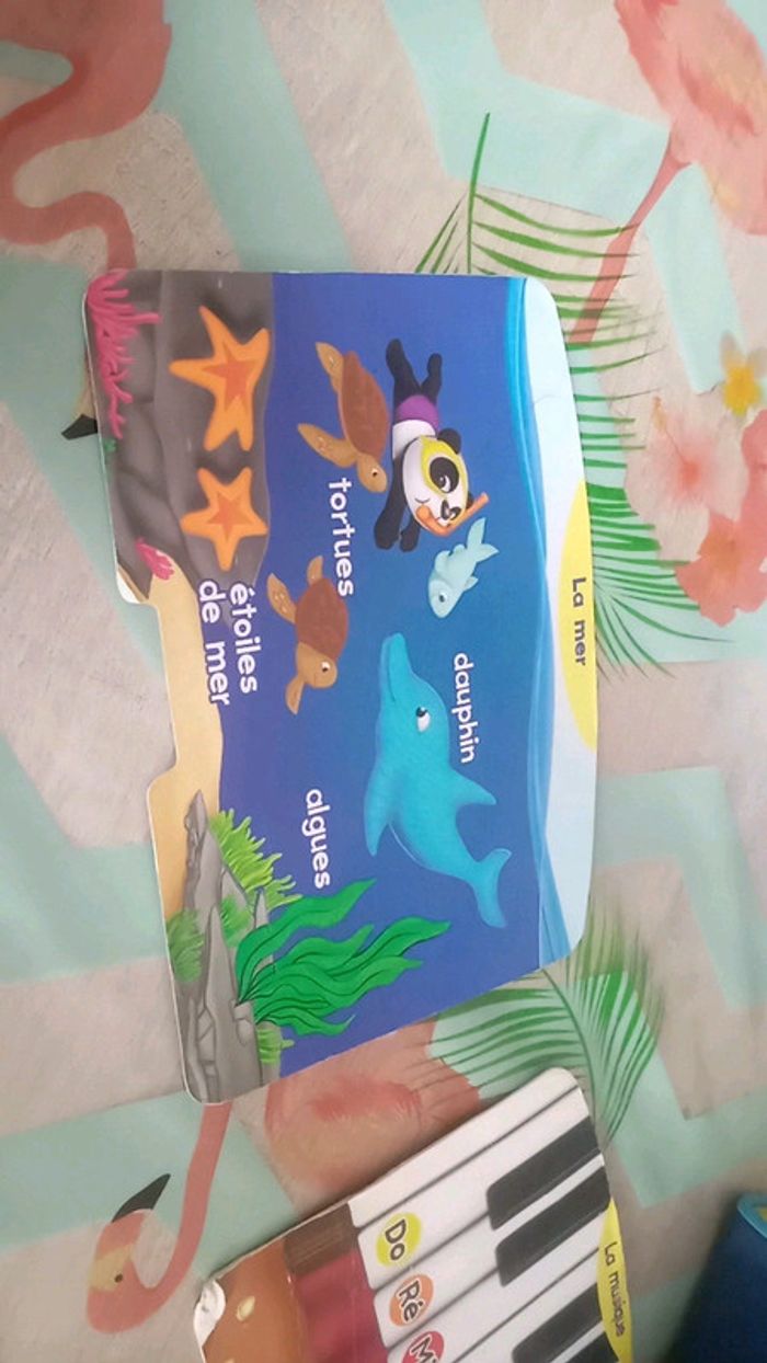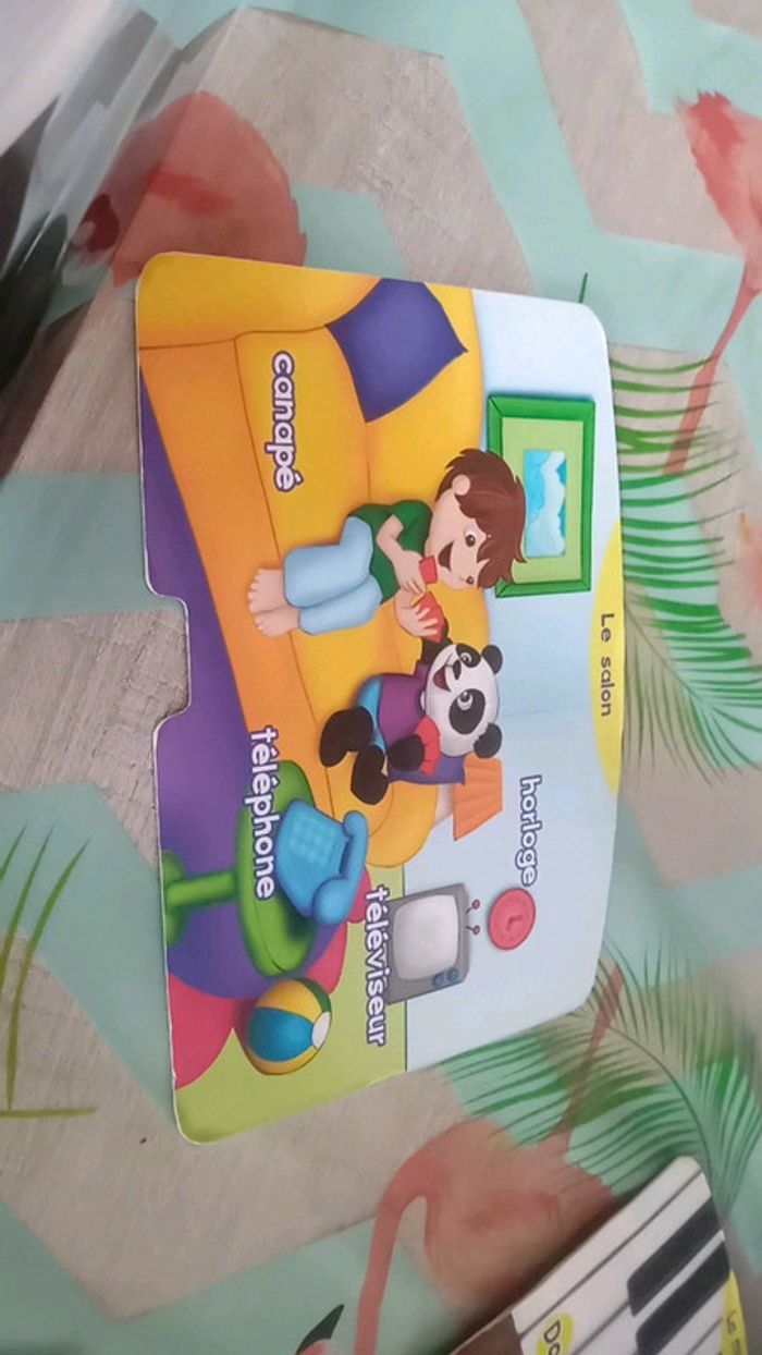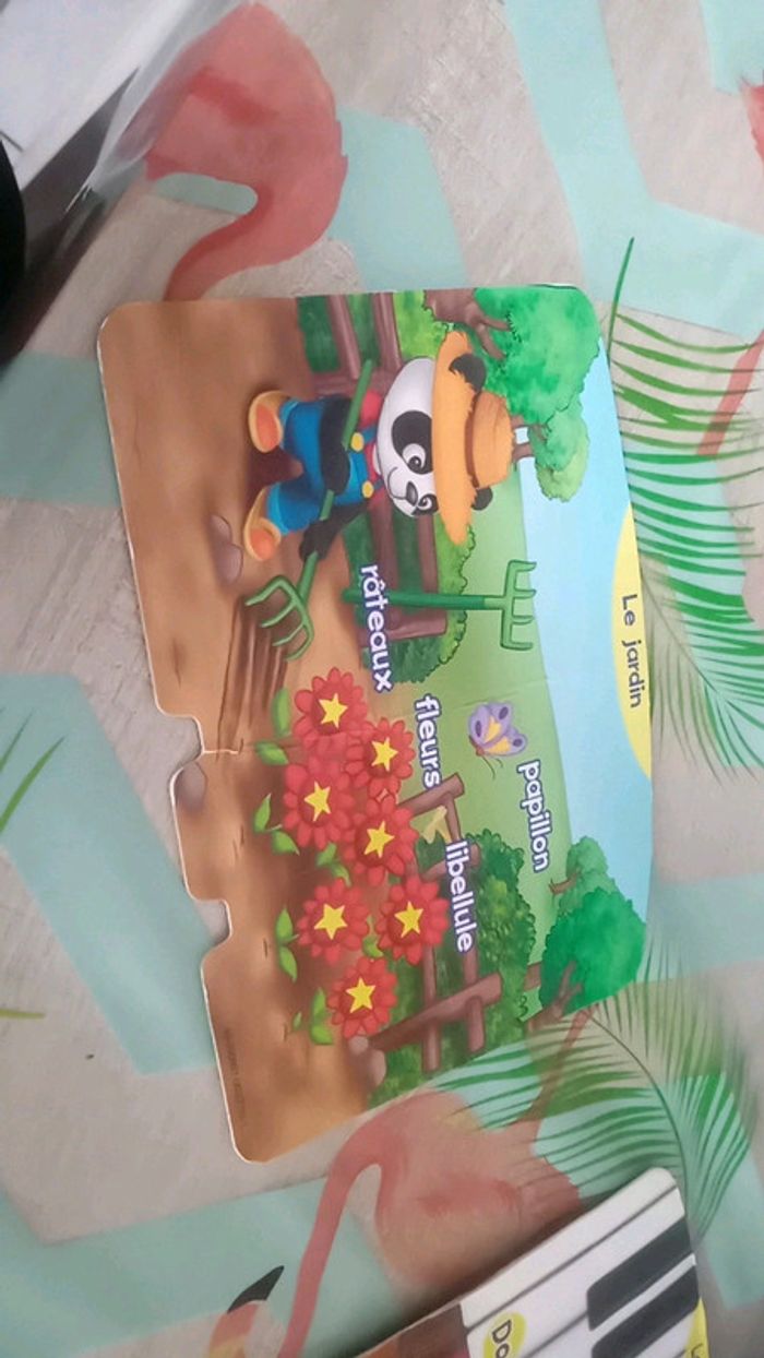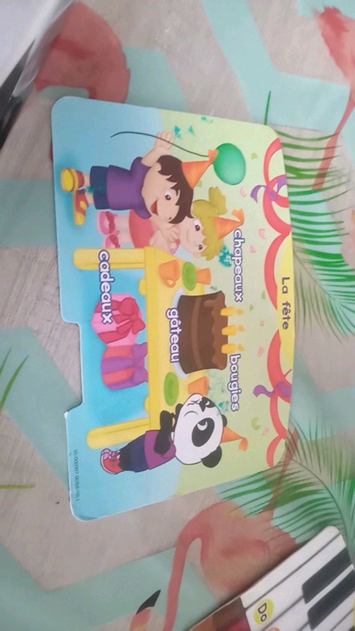 Ordi VTech qui a du vécu mais fonctionne très bien ,il y a 10 cartes recto-verso et les cartes de rangent dans l'ordi .Il y a une carte voir dernière photo qui a souffert mais elles sont un peu abîmés dans les coins du bas c'est normal elles se glissent dans l ordi ( bac jeux 1 )
