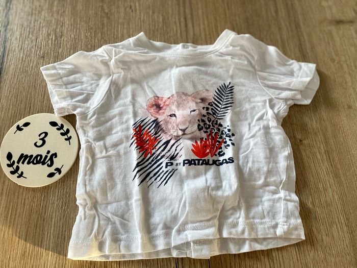 T-shirt patagaus Taille 3 mois État impeccable Coloris blanc orné d’un lion N’hésitez pas à faire un tour sur mon dressing , j’accorde des remises pour des lots Patagaus