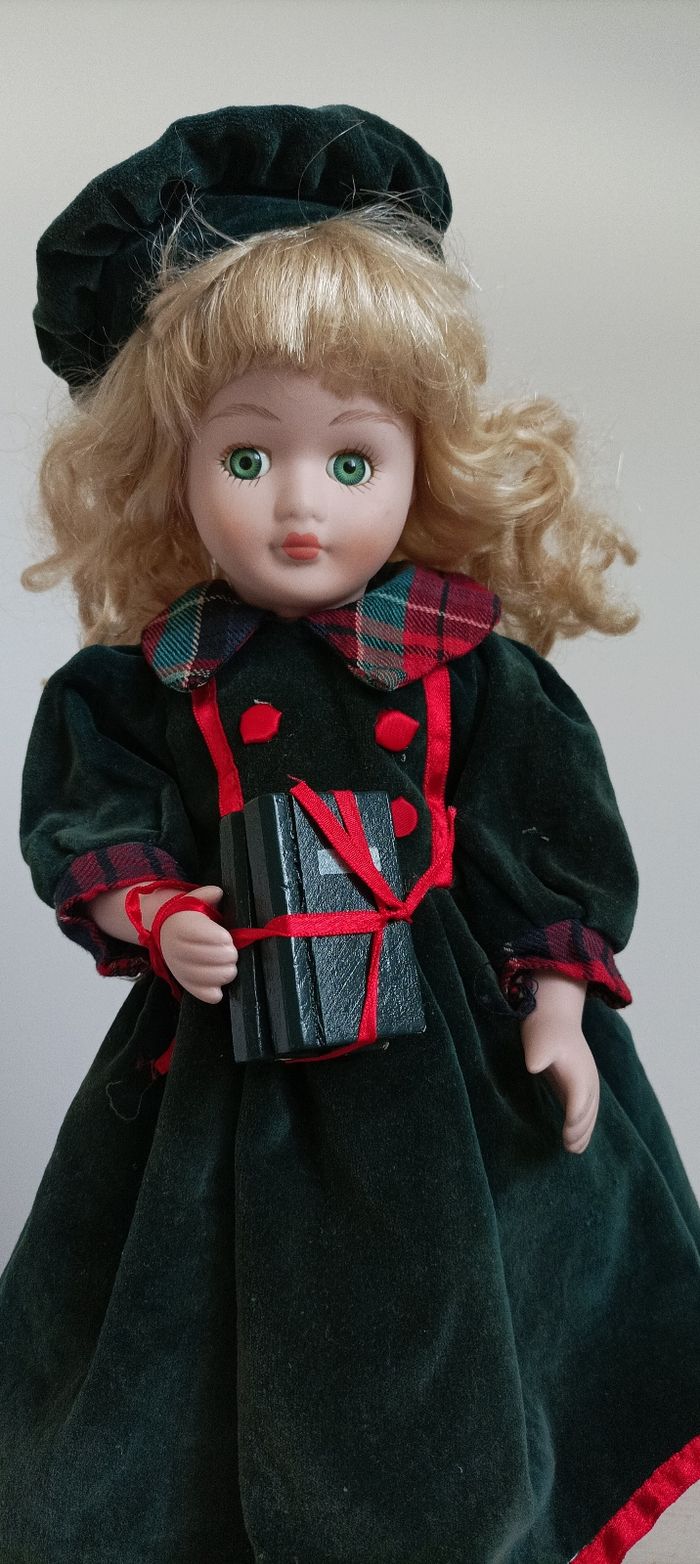 Poupée écolière de collection sur socle...