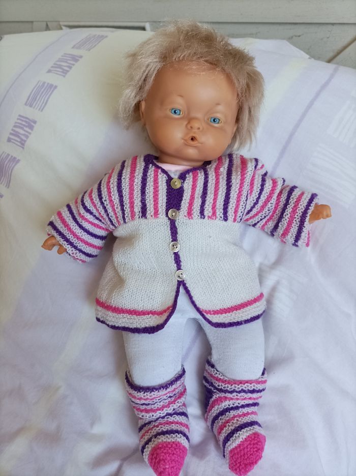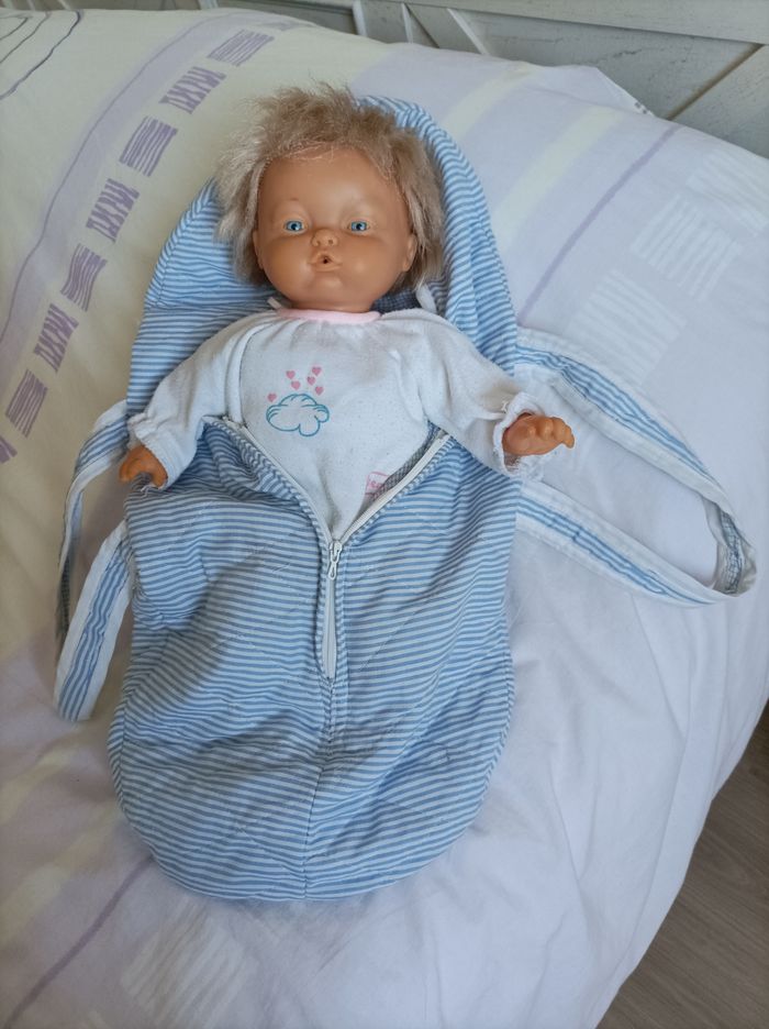 Poupon 40cms, corps mou et refait à la main, tête et membres caoutchouc, entièrement lavés, vêtements et porte-bébé lavés ...