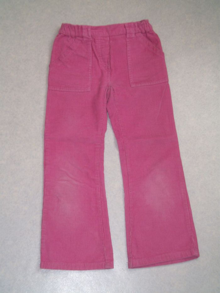 Pantalon rose, en velours, avec poches, taille élastique Très légèrement usé aux genoux. Taille 6 ans