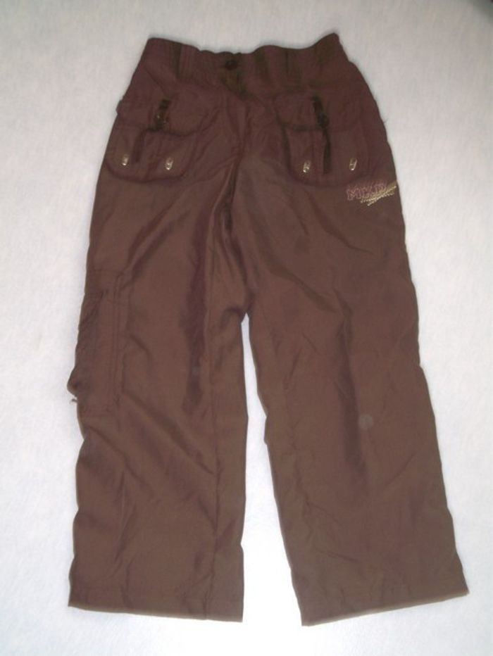 Pantalon marron, tissu léger, avec poches sur le devant, le derrière et le côté taille élastique Excellent état. Taille 6 ans
