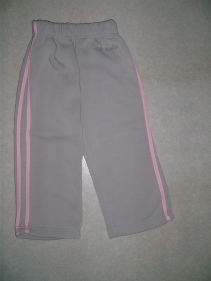 Ensemble Jogging gris à bandes roses sur le côté composé de : 1 bas taille élastique + 1 veste à capuche Tissu molletonné, excellent état. Taille 6 ans