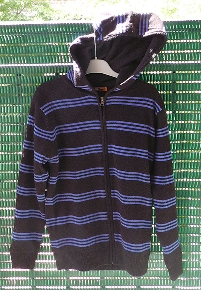Veste à capuche, doublé polaire, rayée noir-bleu taille 14 ans