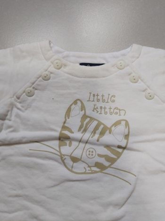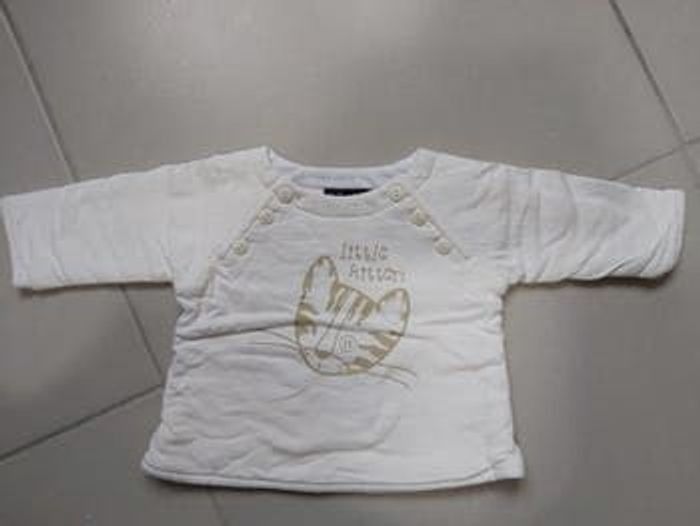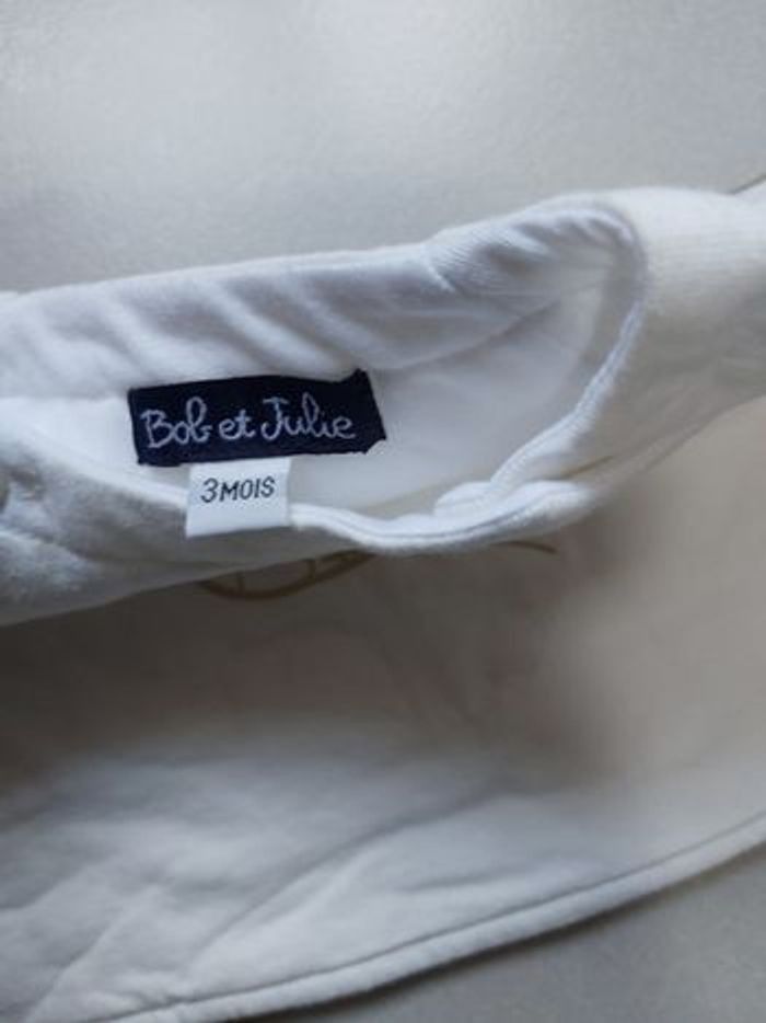 Pull Taille 3 mois Ouverture par bouton au niveau du col Couleur blanc à motif Marque Bob et Julie