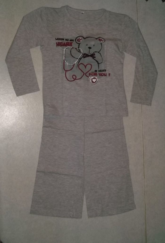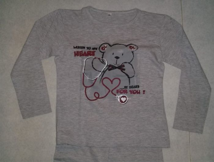Pyjama 2 pièces, gris avec imprimé "ours" sur le haut. Taille 10 ans.