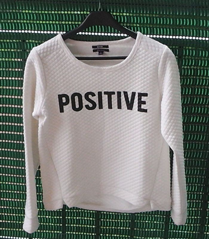 SWEAT blanc matelassé, imprimé "Positive, de marque Kiabi, taille 16 ans.