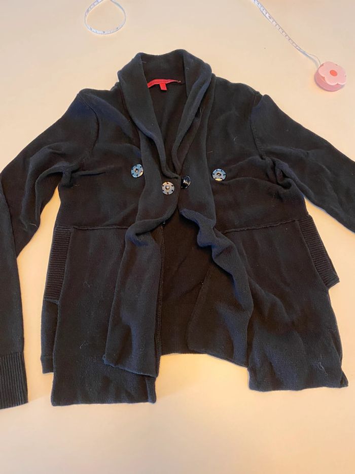 Gilet cardigan noir luxe Marithé Girbaud 10 ans