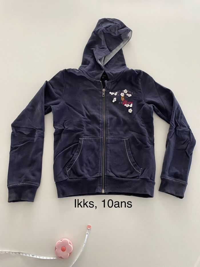 Gilet zip capuche bleu marine ikks fleurs 9 ans - photo numéro 1