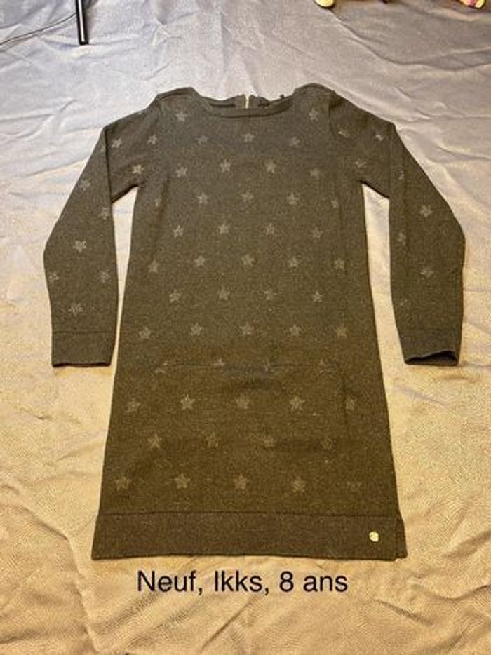 Robe ikks chaude Neuve Noire Étoiles grises Coton Polyamide 9%laine 8ans Longueur 68cm Aisselle à aisselle 33cm Manche 44cm Prix en magasin 89€ Réductions activées sur les achats en lot #cat12168ans