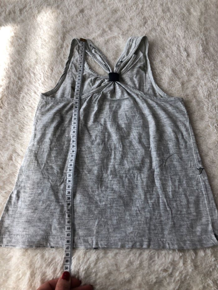 En excellent état, gris chiné, impression oiseaux, dos nageur, seul minime défaut : prévoir un point de couture pour raccrocher le détail de la marque (ou ciseaux pour l’enlever) voir la dernière photo. Réductions activées sur les achats en lot #cat12166ans