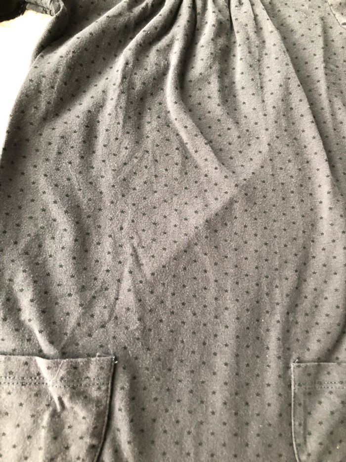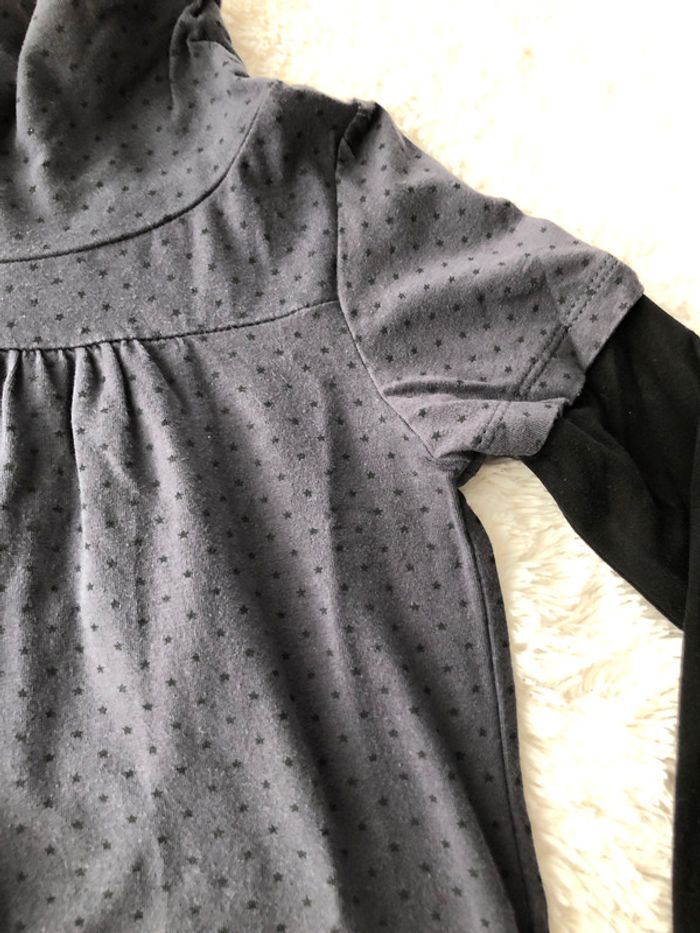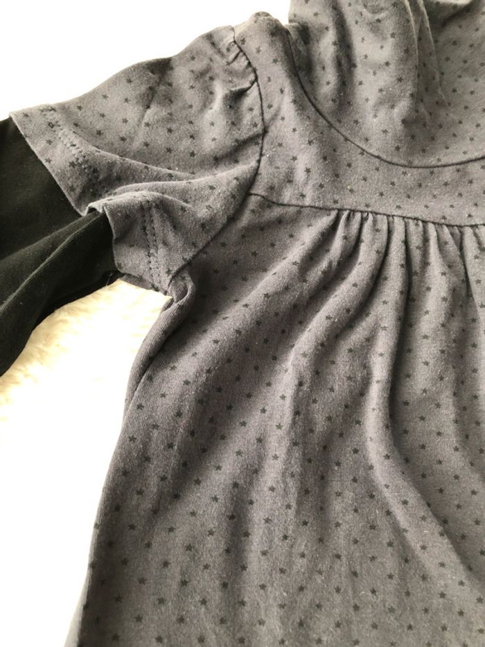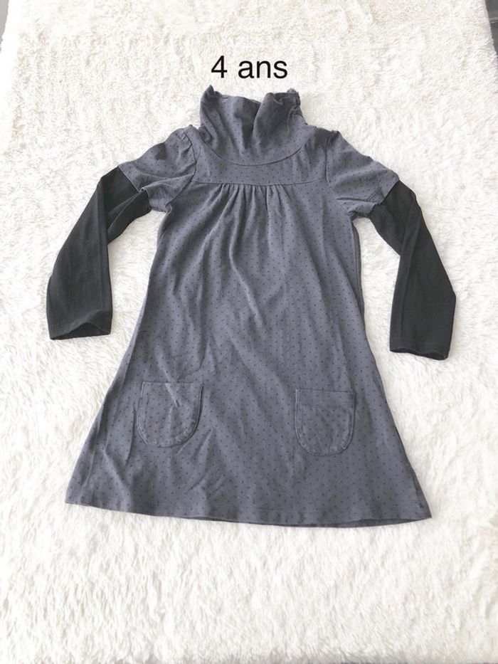 excellent état en coton robe gris anthracite, pois noirs, col montant manches noires (effet tee shirt superposé) Réductions activées sur les achats en lot #cat12164ans