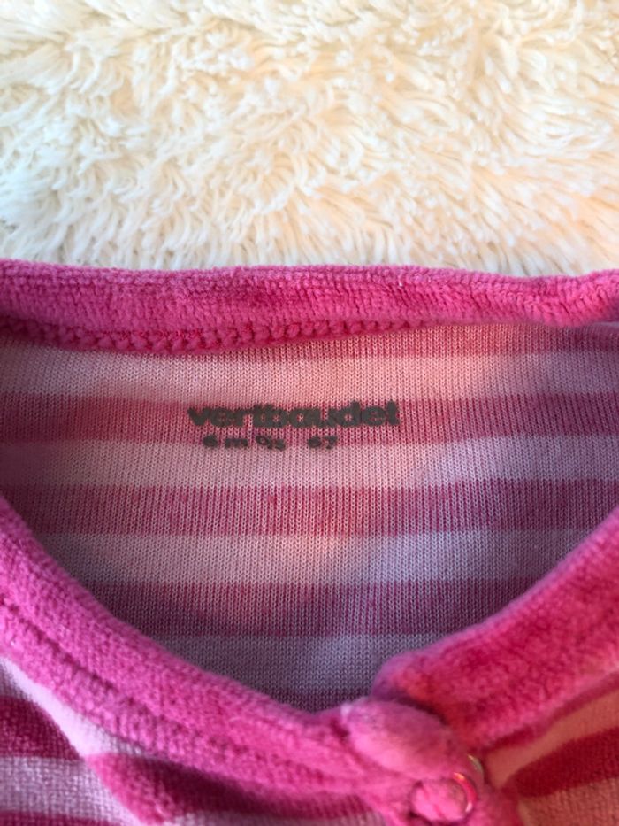Pyjama velours Vertbaudet rayé rose 6m - photo numéro 3