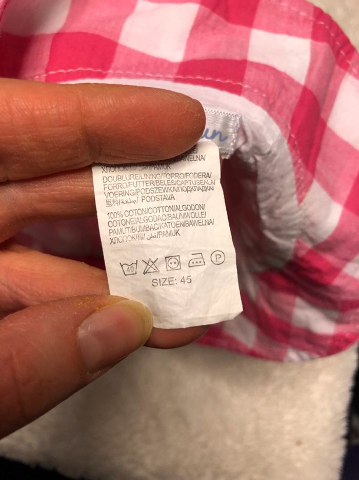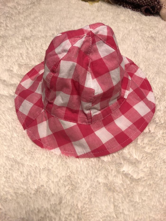 Chapeau carreaux rose et blanc bébé 45
