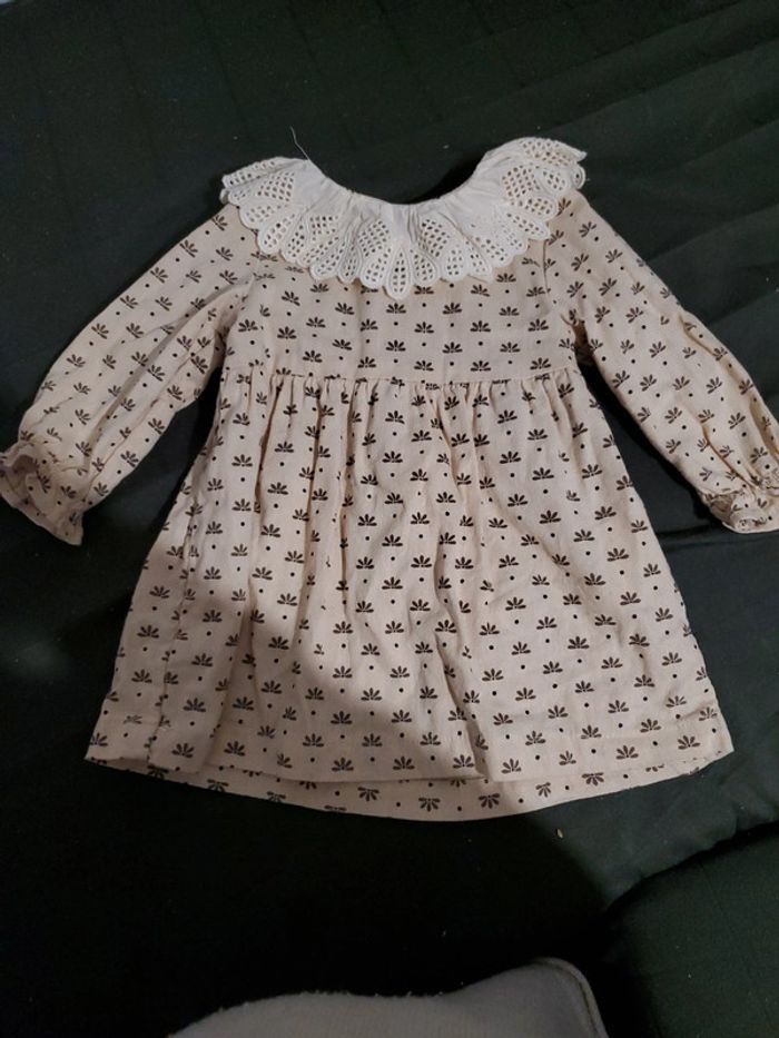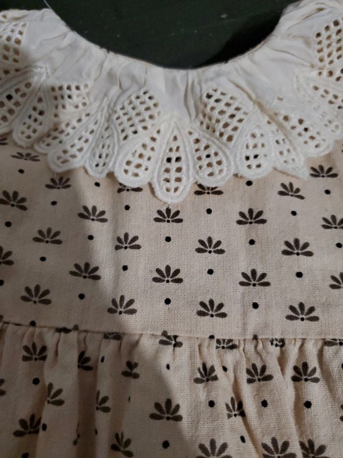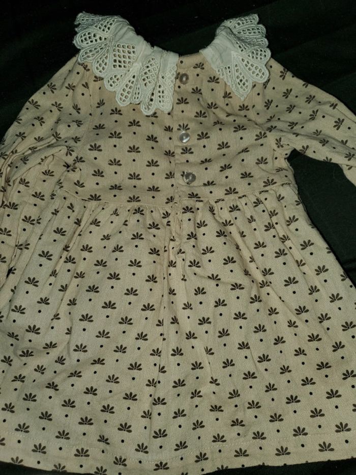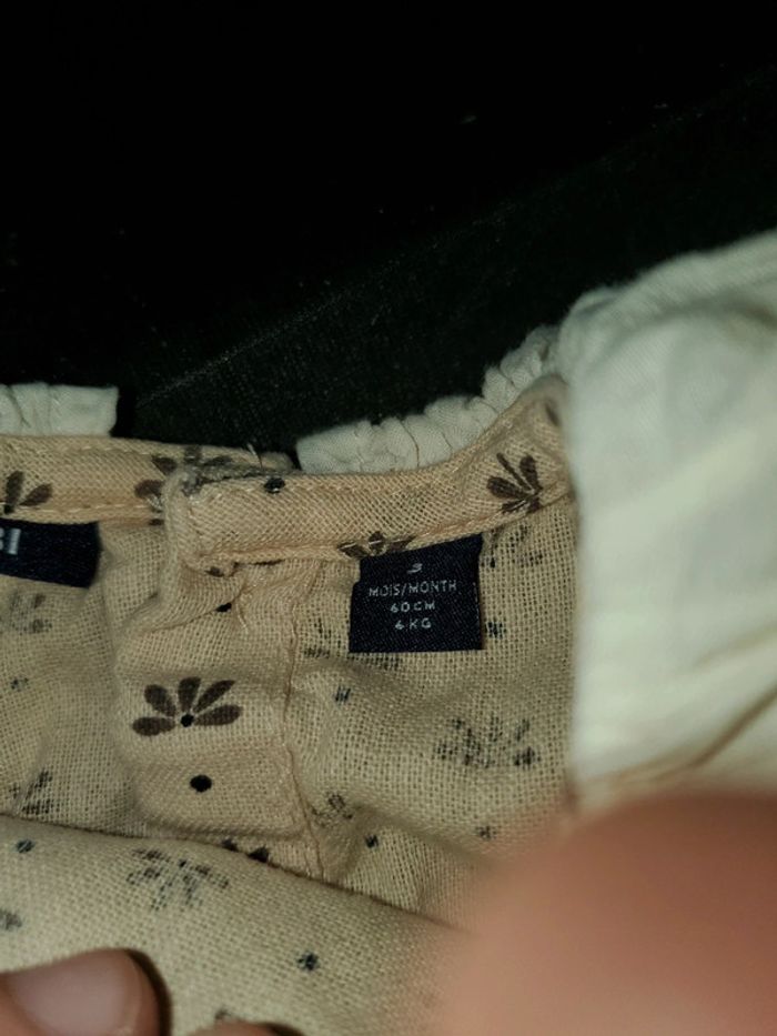 Robe kiabi taille 3 mois de couleur beige avec motif marrons et noirs col dentelle crème toute neuve