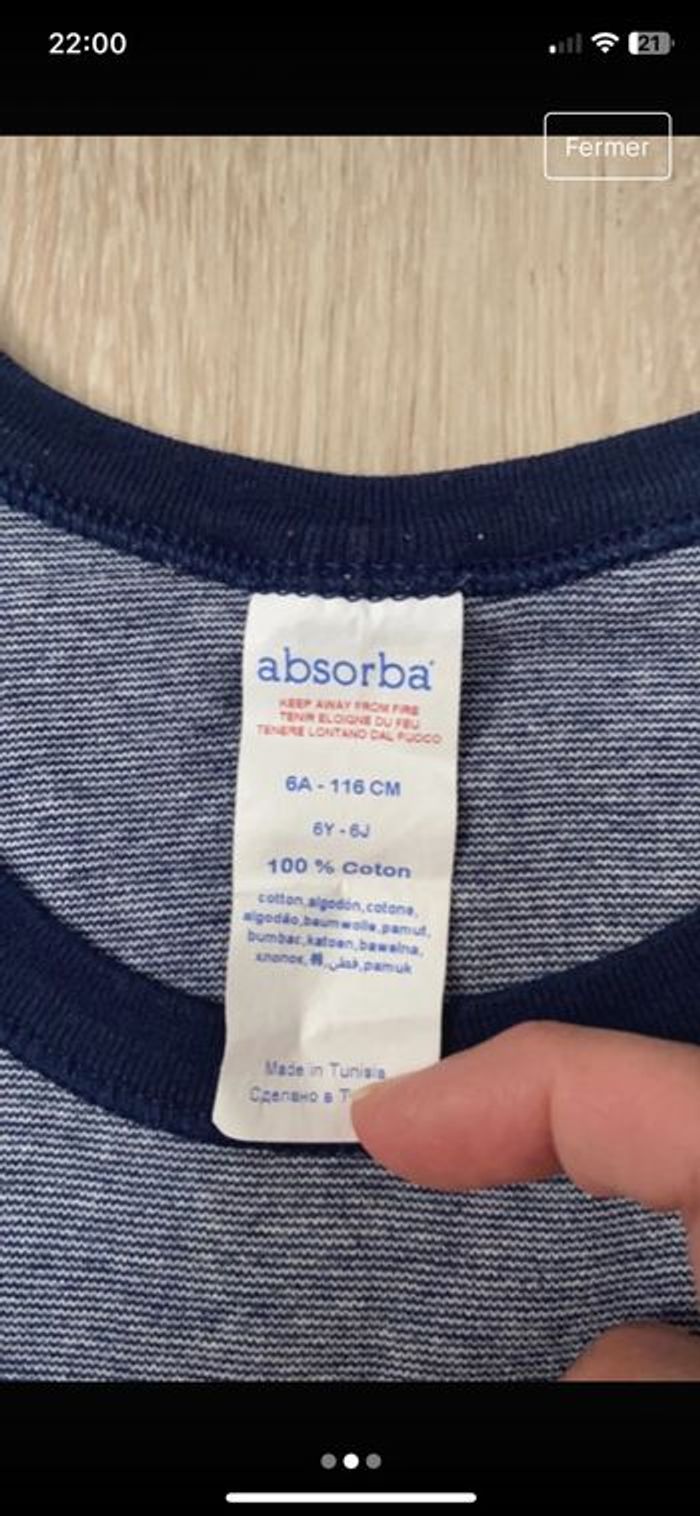 Maillot de corps sans manches absorba 6 ans en très bon état