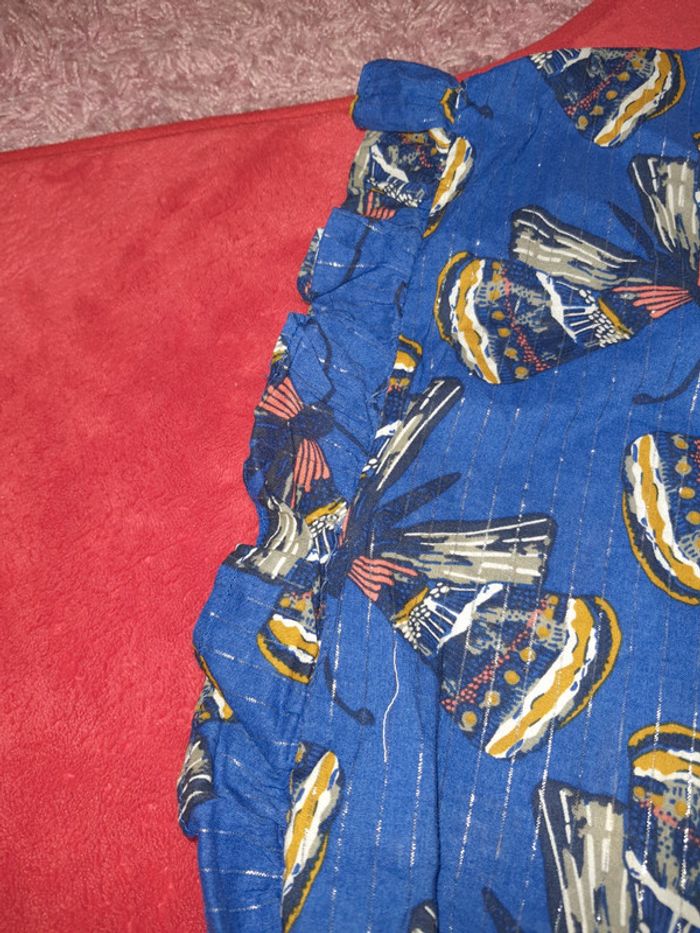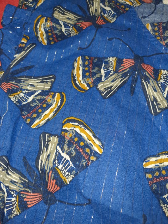 Blouse légère Gemo 8 ans Motifs papillons et lignes verticales scintillantes 🦋 Col en V Ceinture froncé 97% coton 3% fibres métalliques #oummi95girl