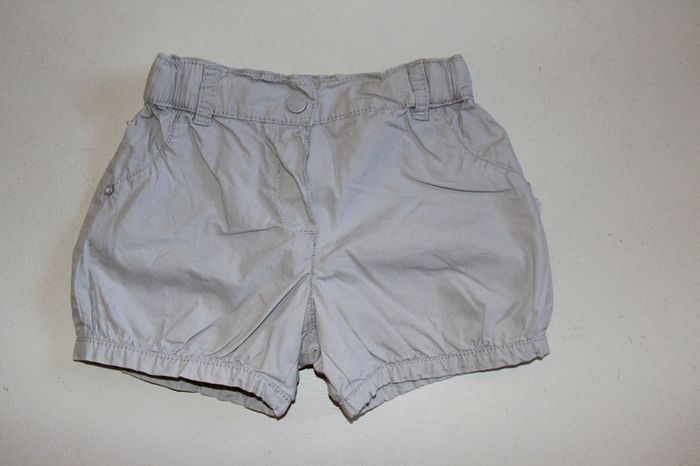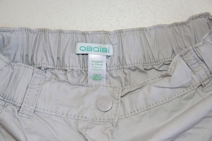 Short léger obaïbi gris clair, fermeture par une pression, élastiqué à la taille et réglable, en très bon état. Taille 3 ans #jessybibou3ans