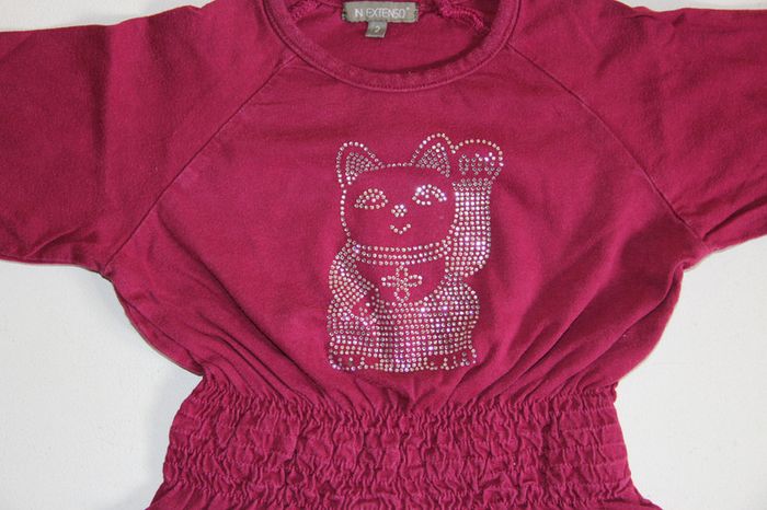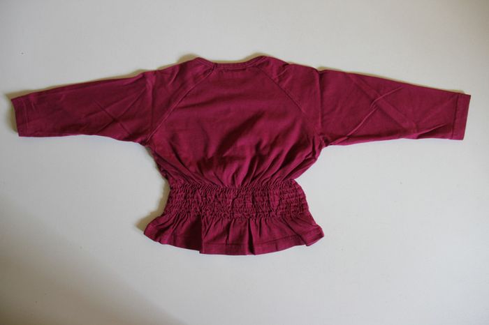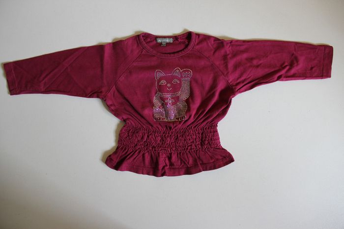 Tee shirt manches longues bordeaux resserré à la taille, en bon état (manque juste 4 strass sur le motif). Taille 2 ans #jessybibou24mois2ans