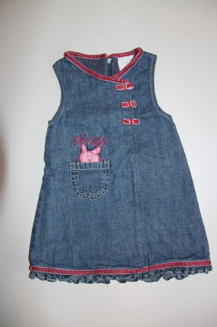 Robe en jeans sans marque avec fermeture éclair au dos, en très bon état. #jessybibou18mois