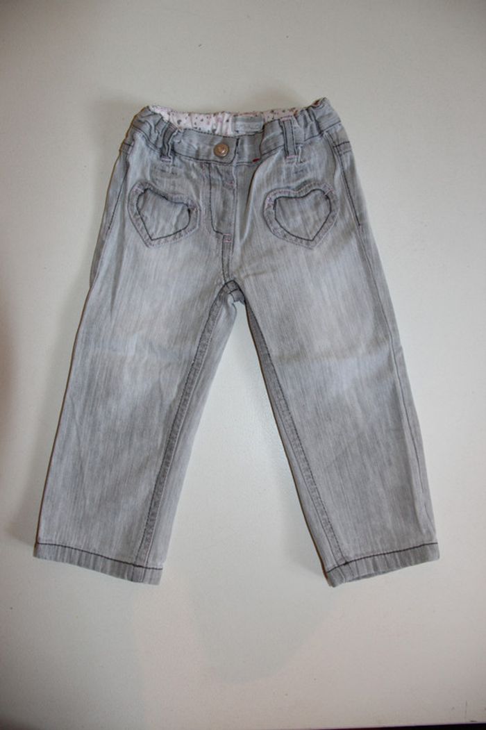 Jeans léger Kimbaloo gris très clair, réglable à la taille, en très bon état. Taille 18 mois #jessybibou18mois
