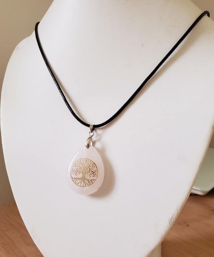 Collier pendentif mixte pierre naturelle Quartz rose lithothérapie avec chaîne en cuir. - Cordon cuir 45 cm Quartz rose : Pierre de l’amour, de la paix et de l’harmonie, le quartz rose est le cristal de référence pour le chakra du cœur. Elle apporte la douceur, la tendresse et la compassion en toute circonstance. Elle est une aide précieuse pour adoucir l’ambiance, créer des ondes bienveillantes et accompagner celui qui la porte dans une quête d’amour inconditionnel. Porter le quartz rose vous permet d’attirer l’amour, dévoiler vos sentiments les plus profonds tels qu’ils sont.   Cette pierre possède le pouvoir magique de soigner toutes les blessures du cœur : déception, rupture, amour mal vécu et toutes sortes de souffrance possibles.