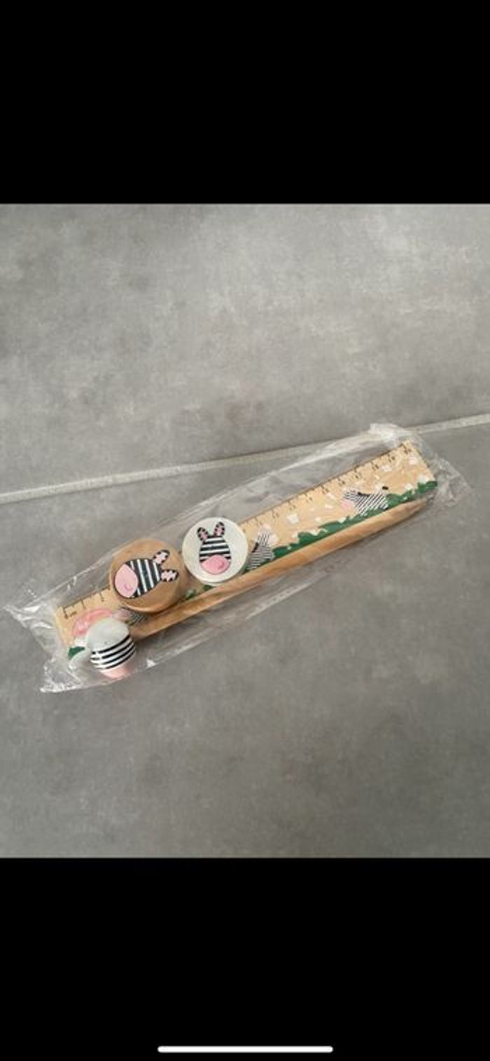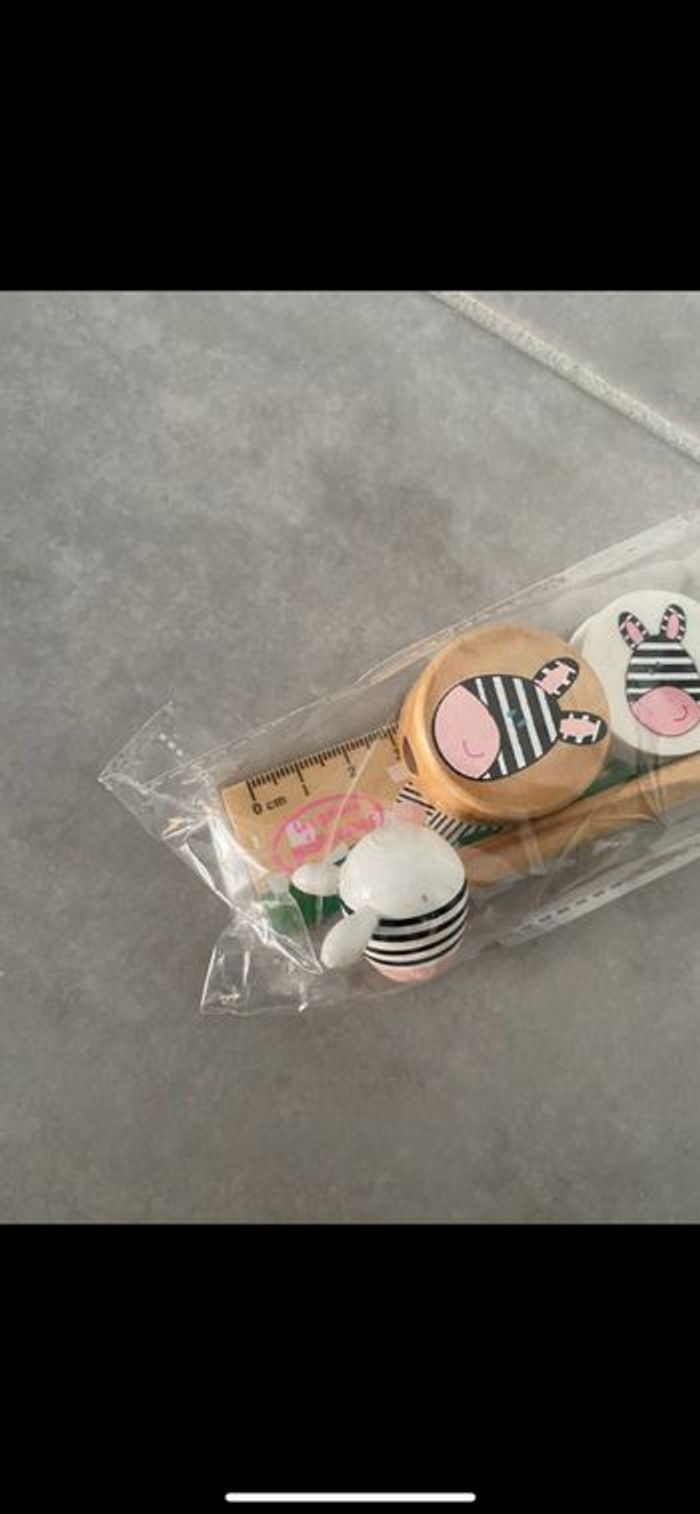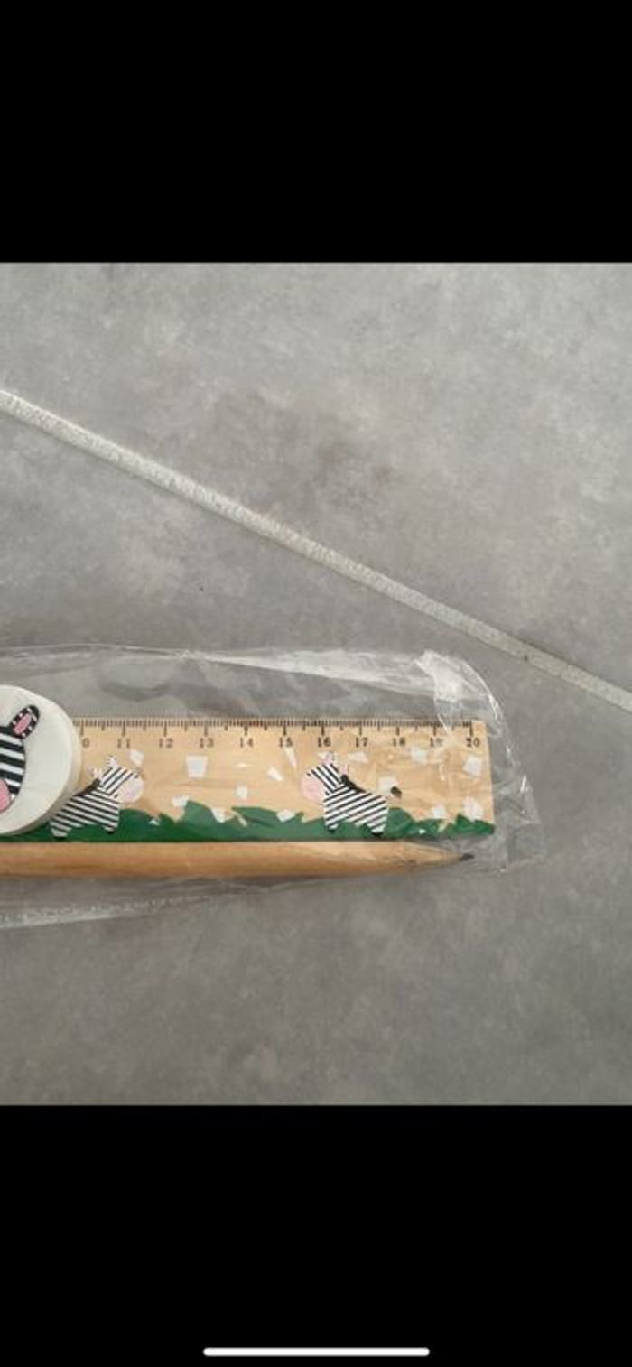 Règle, crayon à papier, taille crayon, gomme. Trop mignon. N’hésitez pas à me suivre car encore beaucoup de vêtements fille (du 1 mois à 8 ans), des vêtements garçon (du 1 mois au 12 mois pour le moment ). Beaucoup de 18 mois à poster si besoin j’envoie des photos. Des chaussures. Énormément de jouets et livres. Maison non-fumeurs et sans animaux même si je les adore. Il n'y aura pas de poils ou d'odeur désagréable. Vous recherchez quelques choses, demandez moi. Je réponds très rapidement. Bon shopping 😊